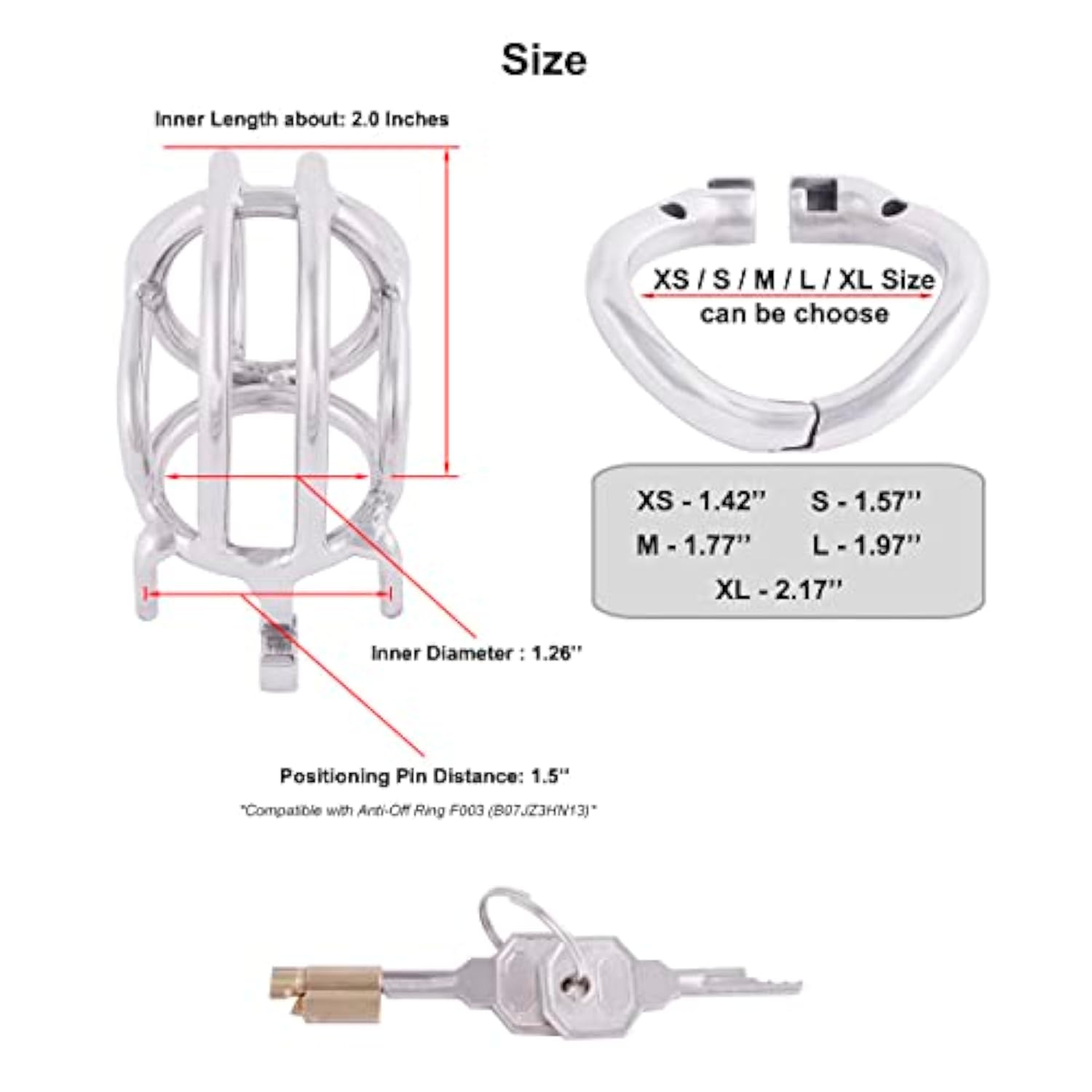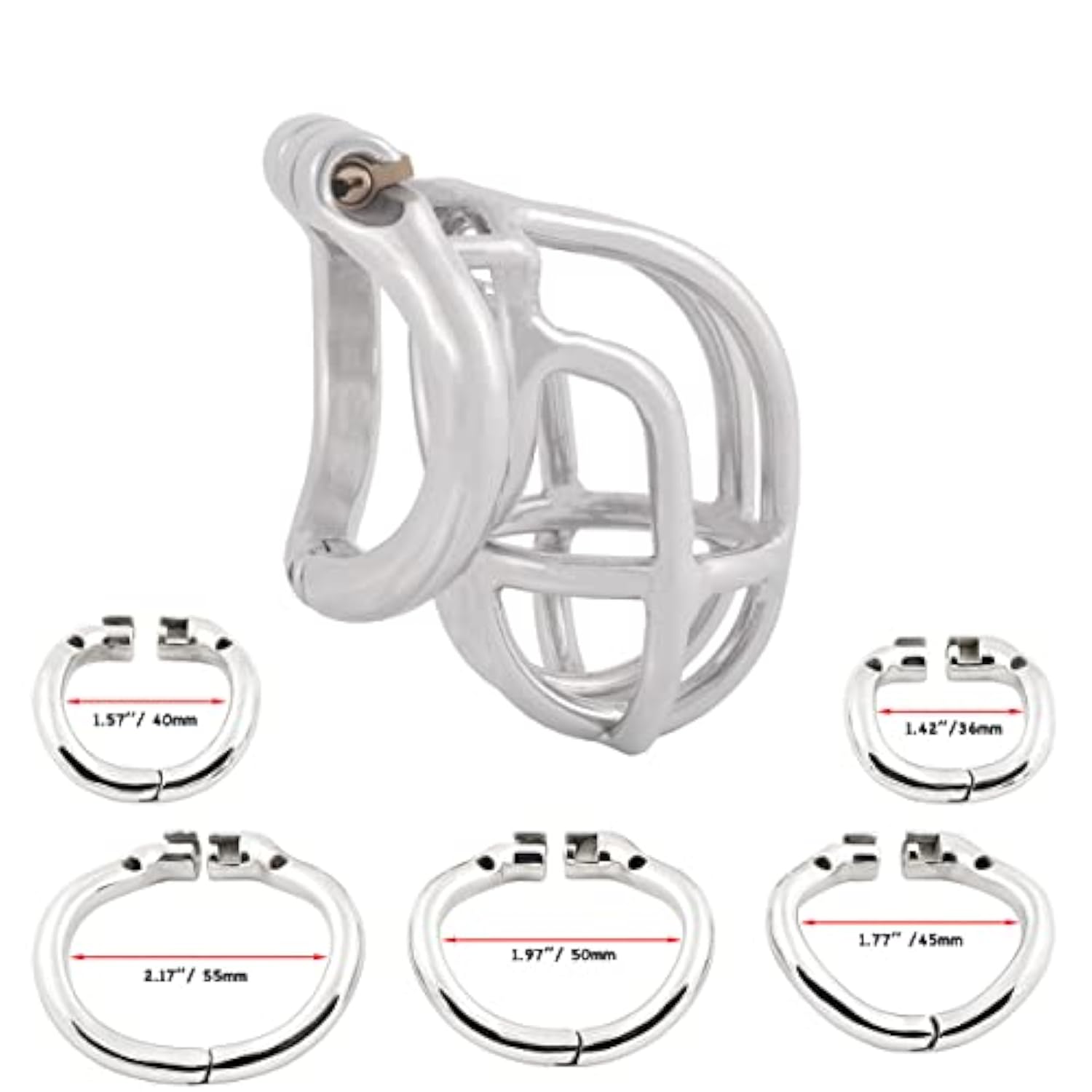 | Ergonomic Design, Easy To Wear Curved Split Ring , More Comfortable Than Common Chastity Device. | | Real Stainless Steel, Not Plating And Hypoallergenic, Manual Mirror Polished, More Sleek, More Comfortable. | | Stealth Lock Design, No Sound Of Metal Colliding With Each Other, More Protective Of Your Privacy. | | Chastity Cage Has 5 Different Sizes Of Rings To Meet Your Size, Fit For Most People. | | Protect Privacy: Opaque Package, Product Information Won'T Be Shown In The Package Or Customs Declaration. | |