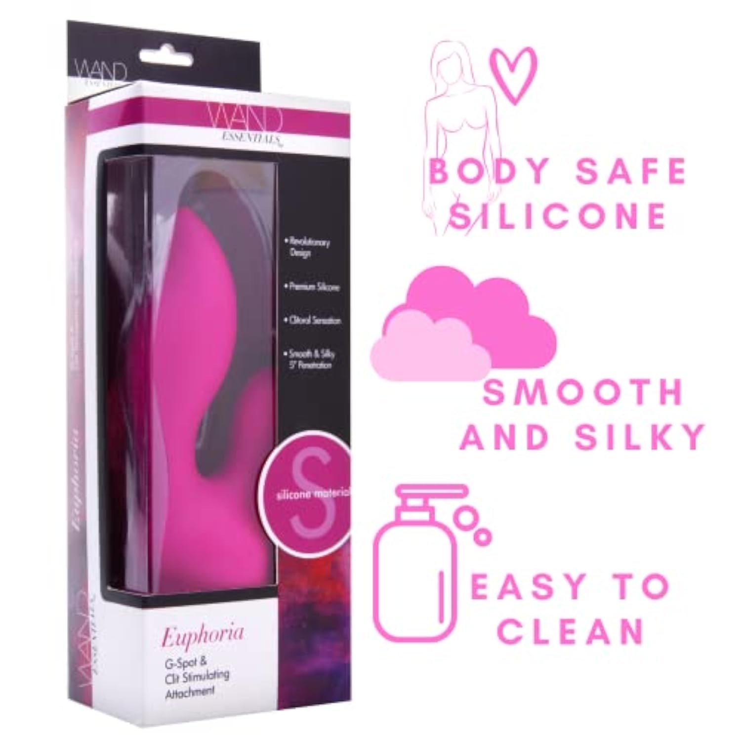 Euphoria G-Spot And Clit Stimulating Silicone Wand Massager Attachment, Pink (Ad444)
