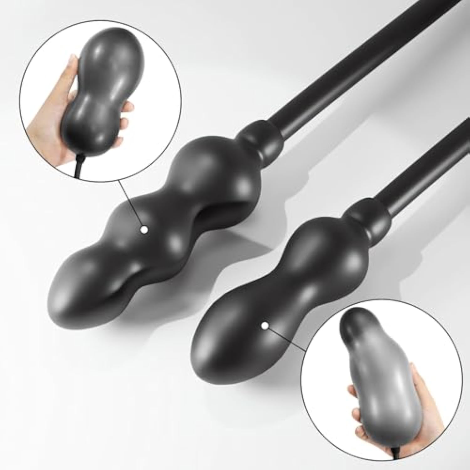 Expand Inflatable Double Anal Plugs Silicone Butt Plug With Long Inflatable Tube For Easy Use Adjustable Size Anal Sex Toy For Gay Lesbian Couple Play