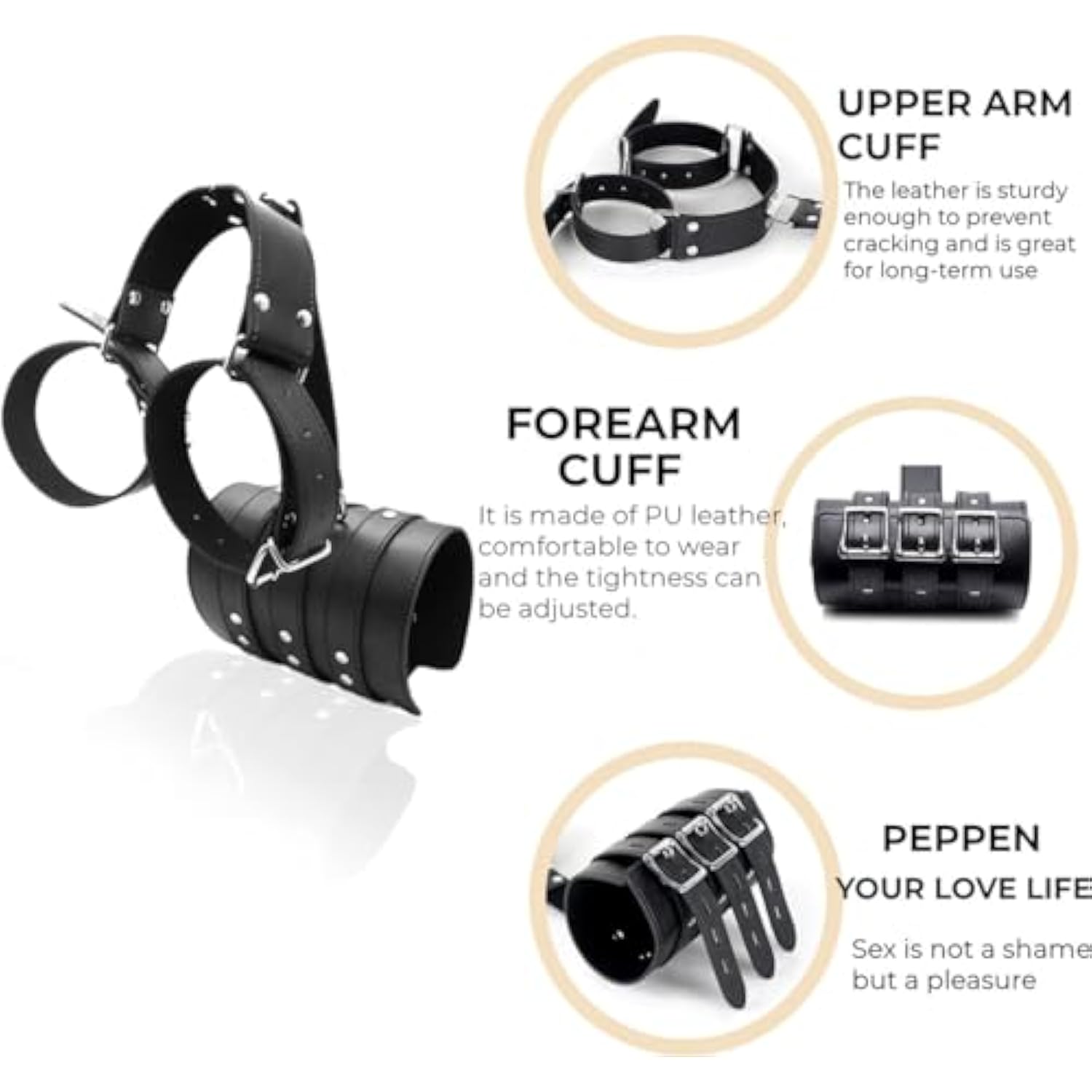 | Leather | | Imported | | High-Quality Materials: These Handcuffs Are Made Of High-Quality Pu Leather, Are Strong, Safe, Non-Toxic And Durable. It Does Not Cause Allergies To The Skin. Easy To Wash And Dry | | Perfectly Compatible With Other Sex Toys. If You Bondage Your Partner, You Can Use A Range Of Sm Products Such As Plug, Dildo, Vibrator, Whip, Paddle, Nipple Clamp, Mouth Plug, Etc. In This Way, The Sexual Stimulation Of The Bondage Is Strengthened | | Strong Bondage: This Restraint Set Has Upper Arm Cuffs And Forearm Cuffs. Press The Upper Arm And Forearm To Form A Fixed Right Angle. When The Restraint Is Complete, The Restrained Person Can No Longer Move | | Easy To Wear And Adjustable: Sm Bondage Set Sex Toys Are Designed For Most People. The Handcuffs Are Adjustable So You Can Adjust The Length And Tightness To Fit Your Wrists And Arms | | Privacy Packaging: All Products Use Neutral Packaging To Protect Your Privacy | |