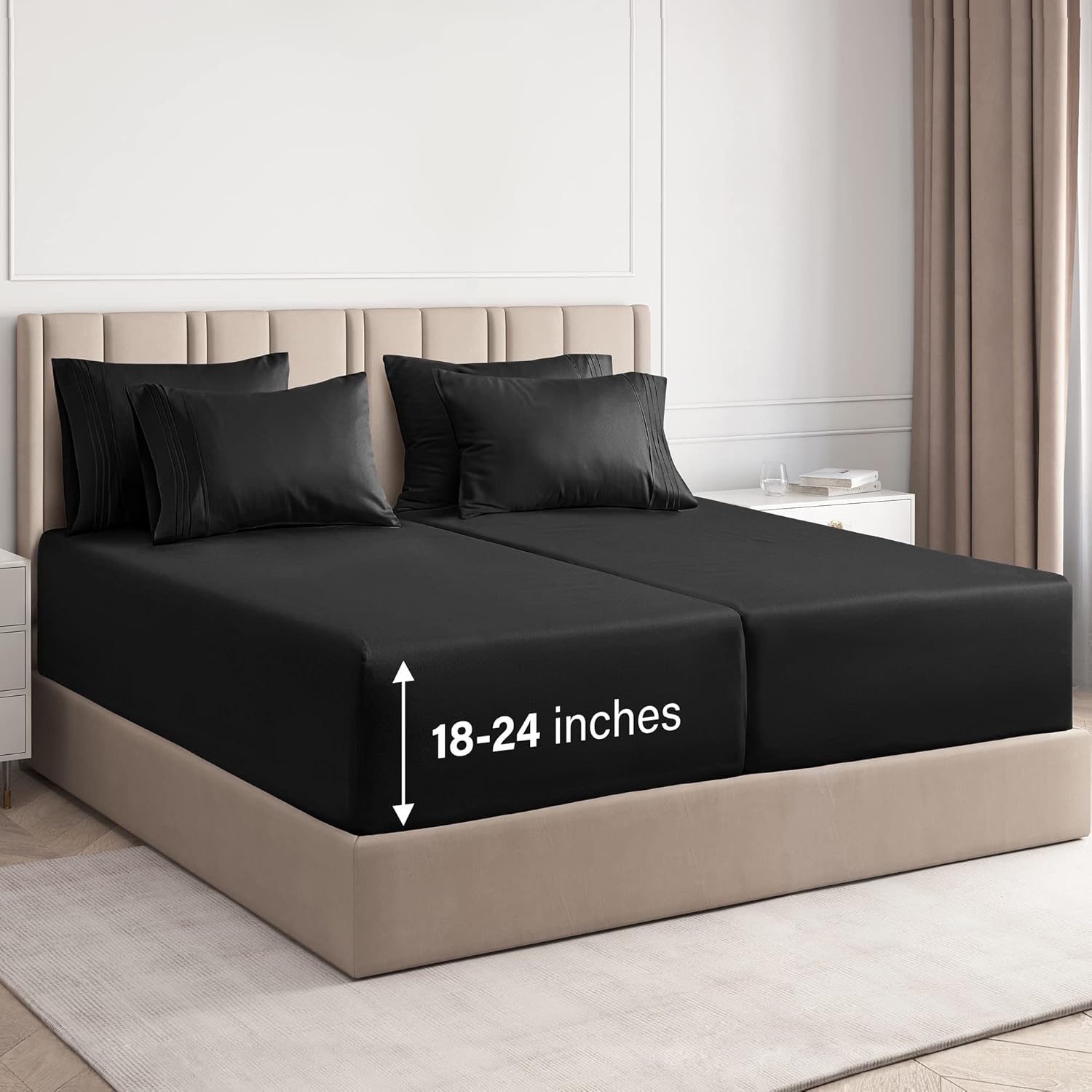 Extra Deep Split King Sheet Set - 7 Piece Breathable & Cooling Sheets - Hotel