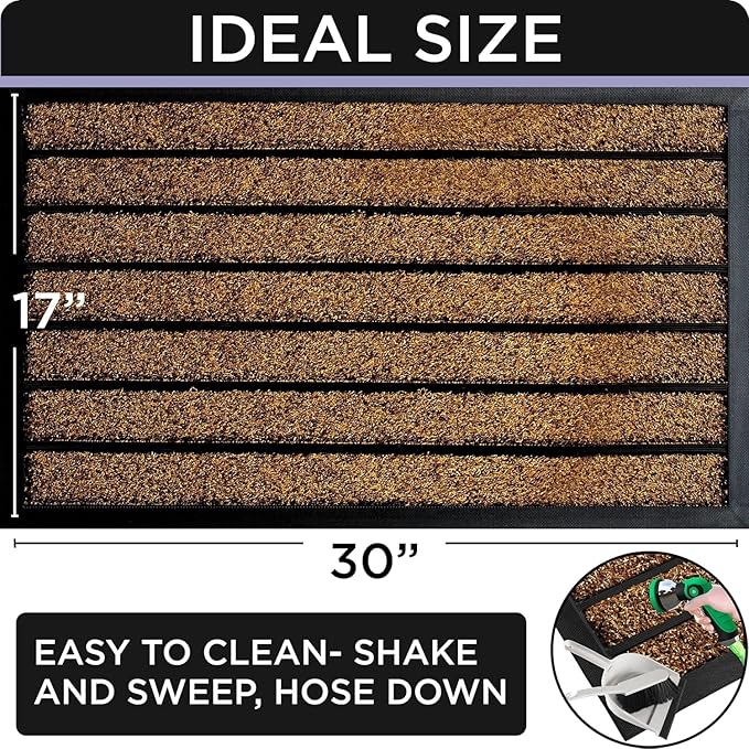 Extra Durable Door Mat - Dirt Trapping Outdoor Welcome Mats - Non-Slip Outdoor Indoor Entrance - Low Profile Front Doormat (30" x 17", Bright Brown)