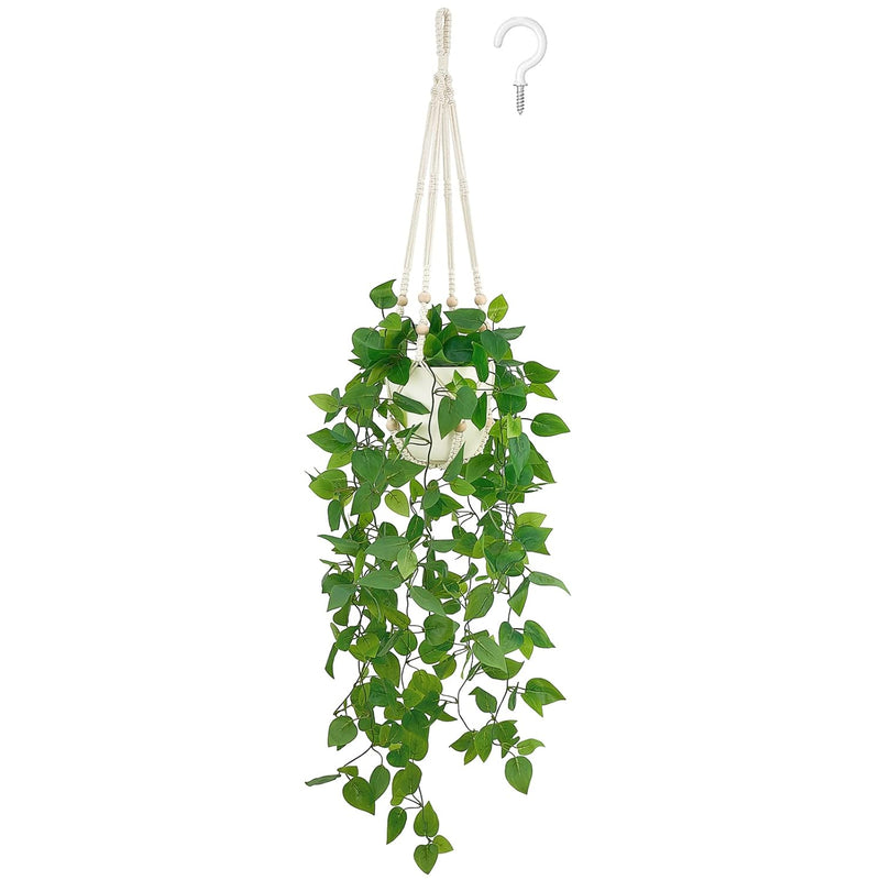 - Rewarding Artificial Hanging Plant Set : Comes With Two Approx. 2.5Ft Pothos Faux Plants, A 29"L Macrame Hanger, A Plastic Pot With 6.5" In Opening Diameter, 5.7" In Height, And A Plant Hook In A Set. This Hanging Fake Plant Can Be Easily Assembled, Just Put The Pot In The Macrame Plant Hanger And Put The Fake Plants In The Planter, Then Hang It Up.