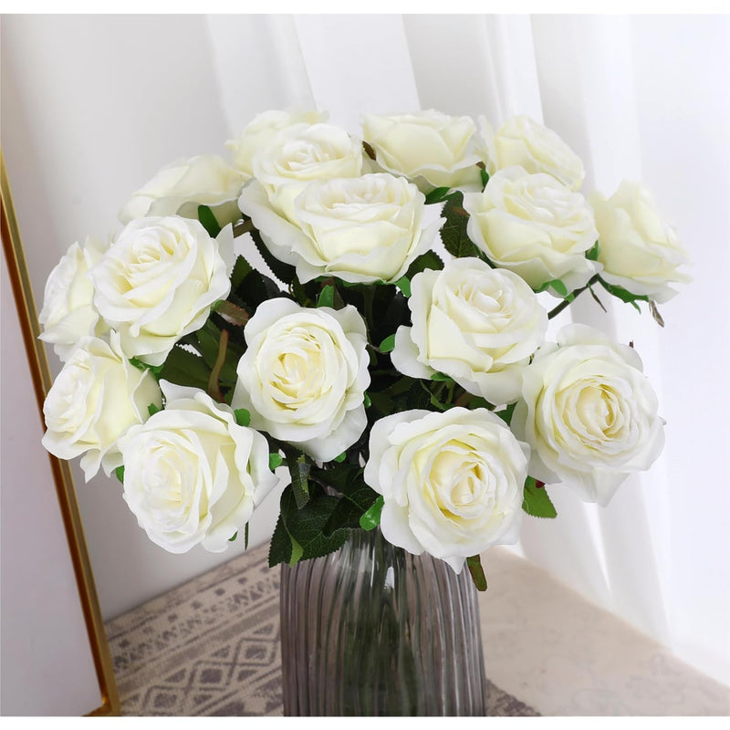 Fake Roses Artificial Silk Flowers - 12 Pcs White Roses Artificial Faux Flower