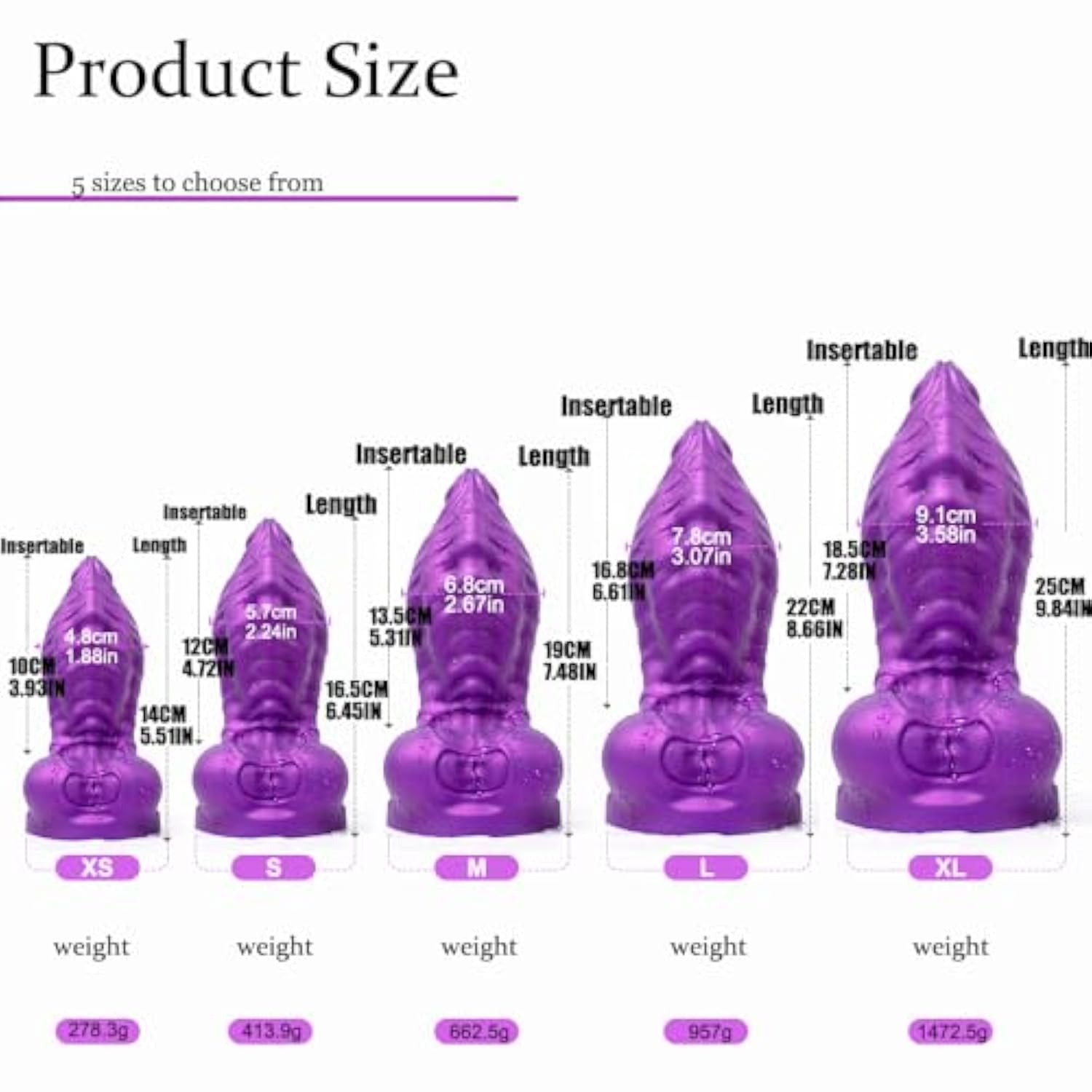| Purple Squirt Dildo - "Skyline Challenger":Dive Into A World Of Fantasy With The "Skyline Challenger," A Purple, Olive-Shaped Squirt Dildo Designed To Mimic The Thrill Of Ejaculation. This Massive Dildo Is Perfect For Those Looking To Expand Their Experiences, Featuring A Textured Body That Enhances Every Thrust. Ideal For Fans Of Both Alien And Dragon Dildo Aesthetics, It Combines Mythical Elements With The Functionality Of A Cumming Dildo For An Exhilarating Session. | | Platinum Silicone Material: Constructed From High-Grade Platinum Silicone, The "Skyline Challenger" Offers A Soft, Skin-Like Feel With The Durability Needed For Intense Use. This Material Ensures Safety And Comfort, Making It Suitable For Prolonged Play. Its Realistic Design, Complete With Veins And Pores, Adds To The