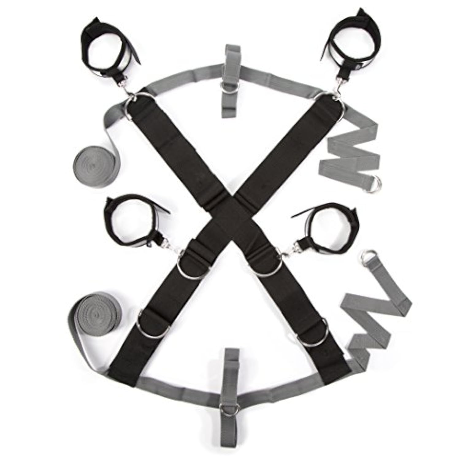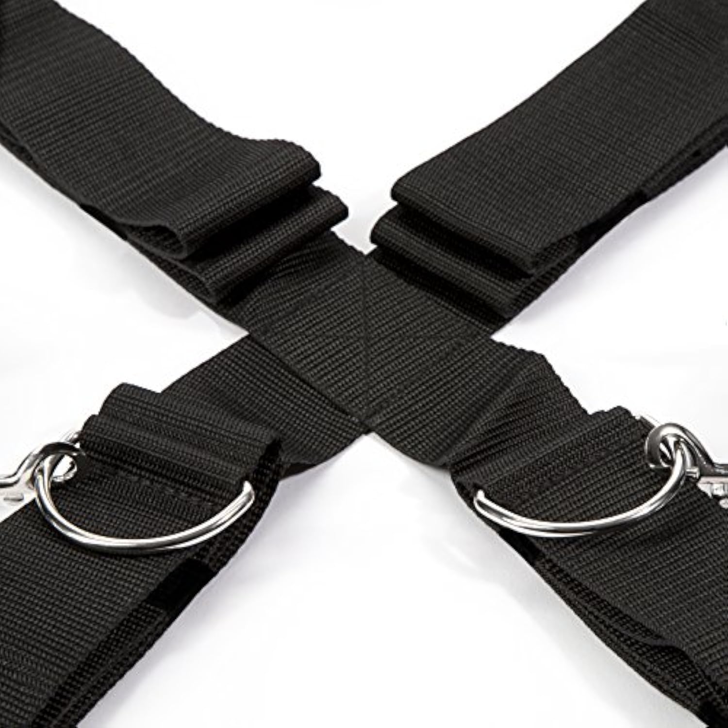 | Part of the Fifty Shades of Grey Official Collection approved by author E L James. | | Over the bed deluxe cross-restraint set for a variety of positions | | Faux-fur lined wrist and ankle cuffs are detachable and designed for comfort | | Adjustable size can fit all double beds (not single beds) | | Includes a blindfold and door hanger | |