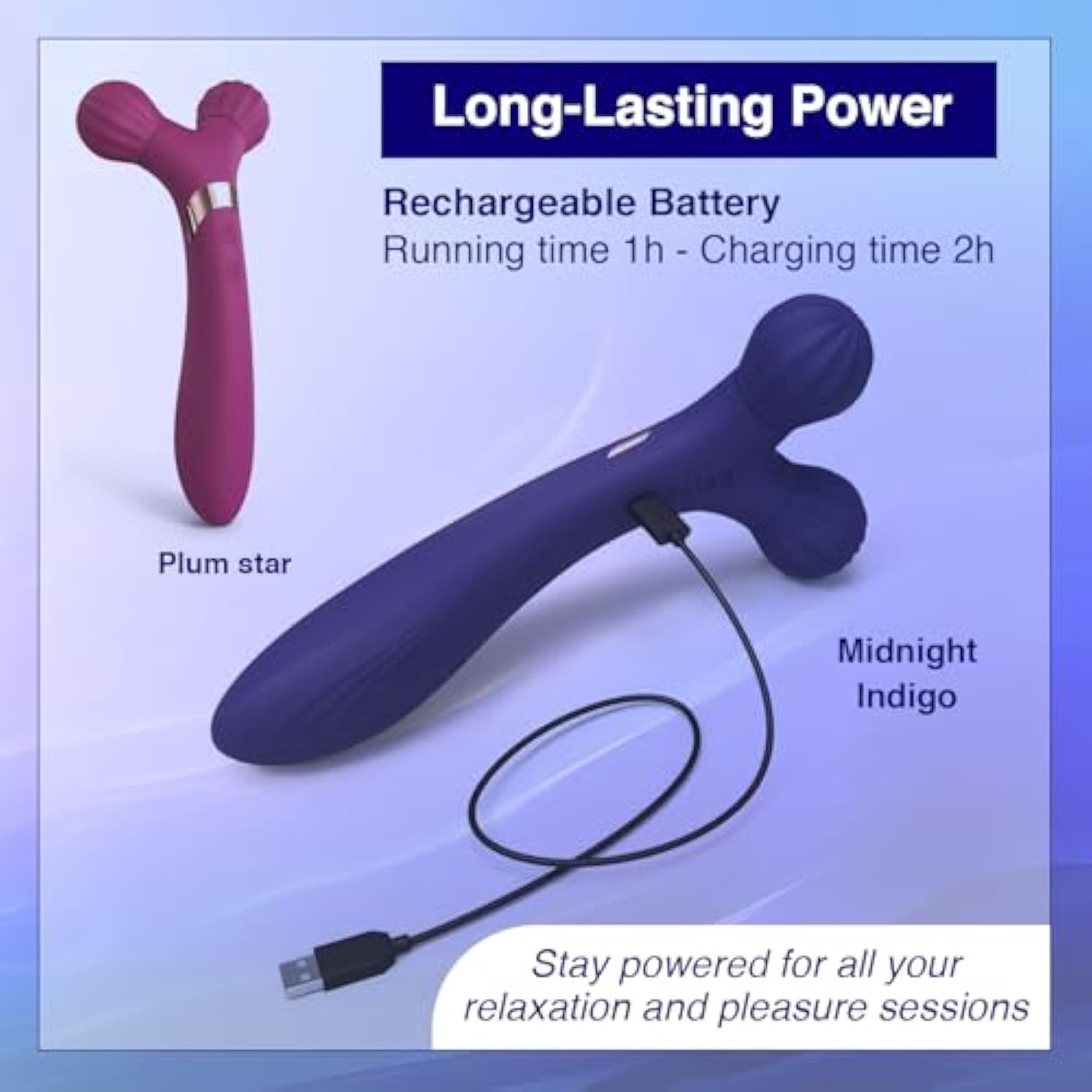 Fireball Adult Dual Vibrator - Dual Stimulator With 10 Vibration Modes For Women - Waterproof Flexible Design Toy With Magnetic Charger - Silicone Sexy Toy For Couples - Midnight Indigo