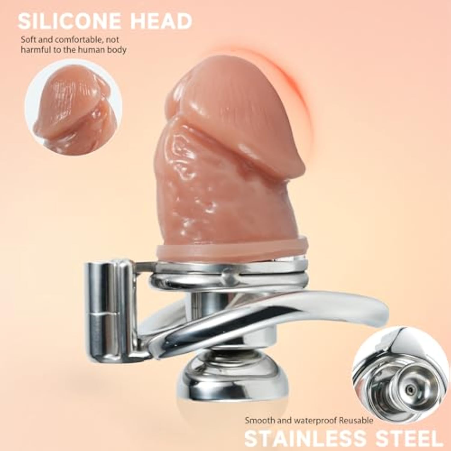 | Chastity Cage Material: Chastity Cage Is Made Of Metal Stainless Steel Material, Smooth And Delicate Surface, No Rust, Safe And Reliable, Durable And Easy To Clean. | | Features:The Chastity Cage Comes With A Removable Dildo That Can Be Attached To The Chastity Cage By Rotating, Funnel Shaped Connector For Easy Urination. Hollow Design For Good Air Permeability. | | How To Use: Unscrew The Catheter Cap To Connect The Dildo Glans, Then Tighten It To Use. The Inverted Penis Cage Can Also Be Used With A Chastity Belt. (If You Need A Chastity Belt, Please Purchase Separately). | | Dimensions: The Length Of The Male Penis Cage Is Approximately 45Mm; The Inner Diameter Of The Funnel Is Approximately 28Mm; The Total Length Of The Dildo Is S-50Mm/M-57Mm; The Maximum Diameter Is S-32Cm/M-35Mm. | | Ergonomic Design: The Male Chastity Belt Naturally Fits The Body Curves, Ergonomic Design, Comfortable Without Strangling Flesh, Stable And Not Easy To Fall Off. (Our Products Are Adult Products With Private Packaging, Will Not Leak Privacy). | |