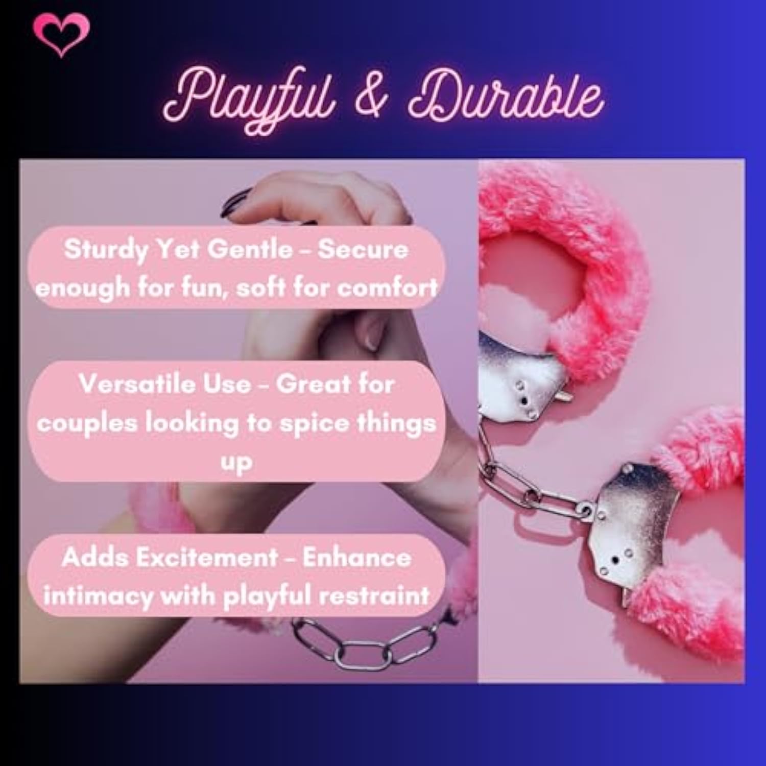 | Adjustable Fit For Couples – Designed As Versatile Couple Handcuffs, They Fit Most Wrist Sizes And Are Ideal For Adding Fun And Excitement To Your Bedroom Adventures. | | Playful – Sturdy Enough For Kinky Handcuffs Fun, But Light Enough For A Playful Introduction To Bedroom Handcuffs. Great For Exploring New Fantasies! | | Beginner-Friendly – Perfect For Those New To Sex Cuff, This Affordable Option Lets You Experiment Without Breaking The Bank. These Soft Cuffs For Sex Play Will Spice Up Your Intimate Moments. | | Stylish Fluffy Look – These Sex Handcuffs Feature A Soft, Fluffy Exterior For A Sensual And Playful Vibe, Blending Comfort And Style. Available In Three Vibrant Colors To Match Any Mood Or Preference. | | Perfect Gift Idea – Surprise Your Partner With These Sex Cuffs! An Budget-Friendly, Fun, And Creative Way To Explore Fantasies Together. | |