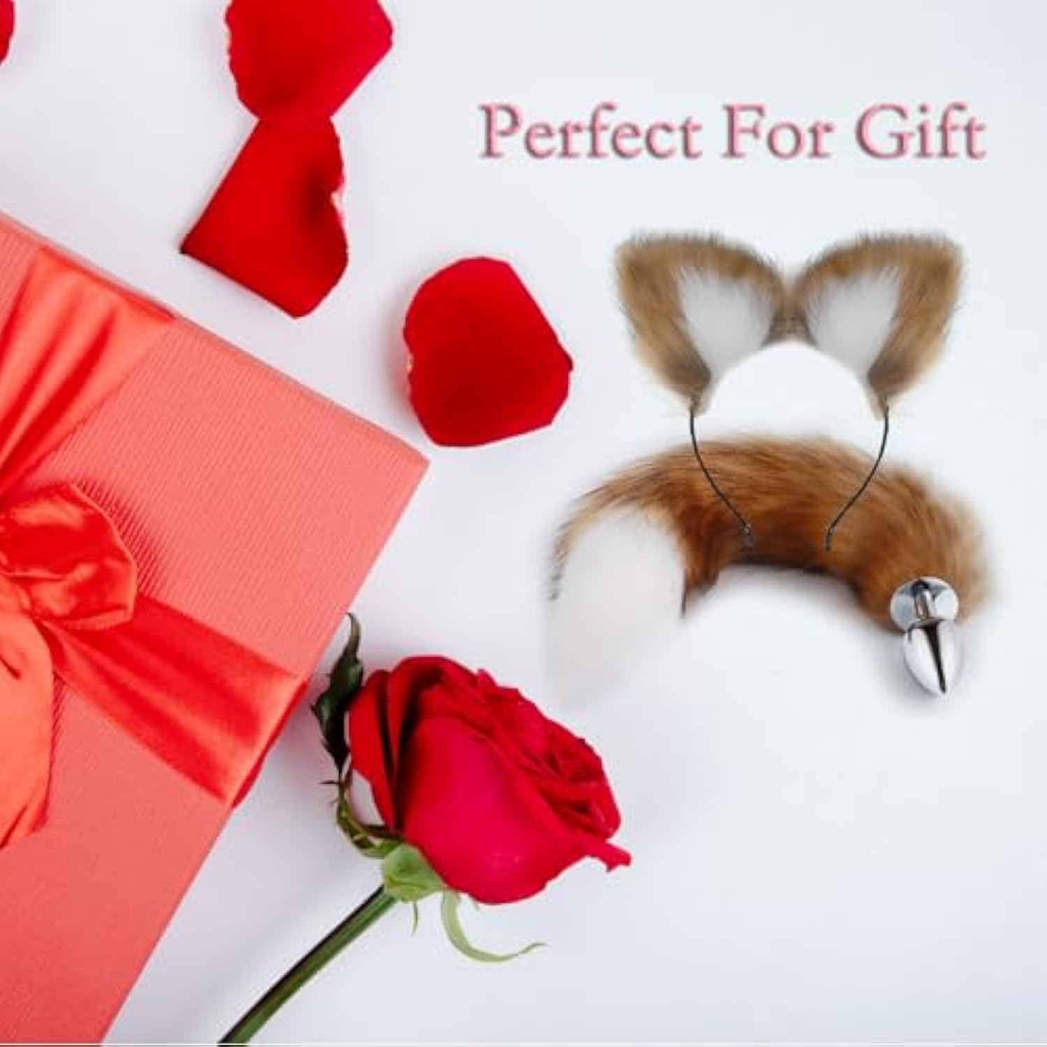 Fox Tail Anal Butt Plug, 2Pcs/Set Artificial Fox Tail Anales Plug With Cat Ears Headband, Fox Adult Metal Butt Plug Sex Toy For Sm & Cosplay (Brown, White)