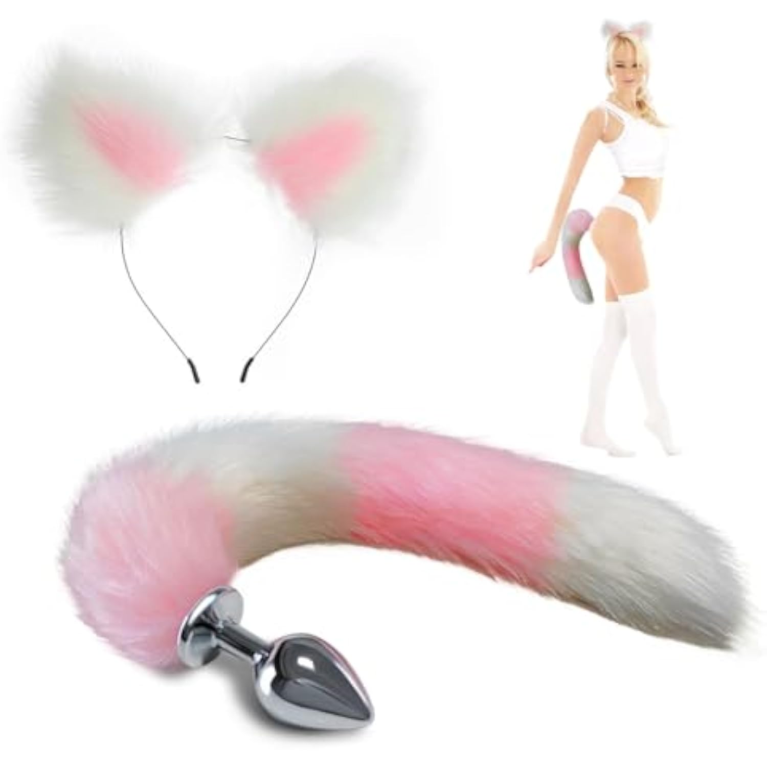 Fox Tail Anal Plug?Metal Buttplug?Anal Toys For Beginners And Veteran Players,Sex Toy Can Long Time Comfortable Wear.Furry Ear Headband For Adult Games And Cosplay. (Medium)
