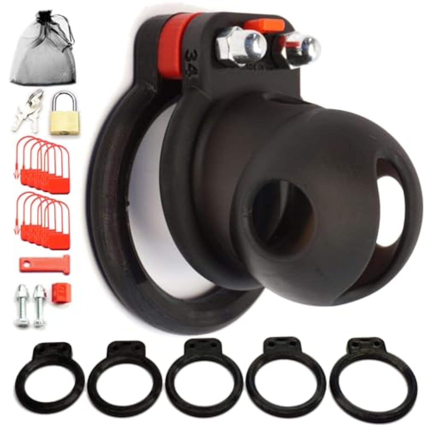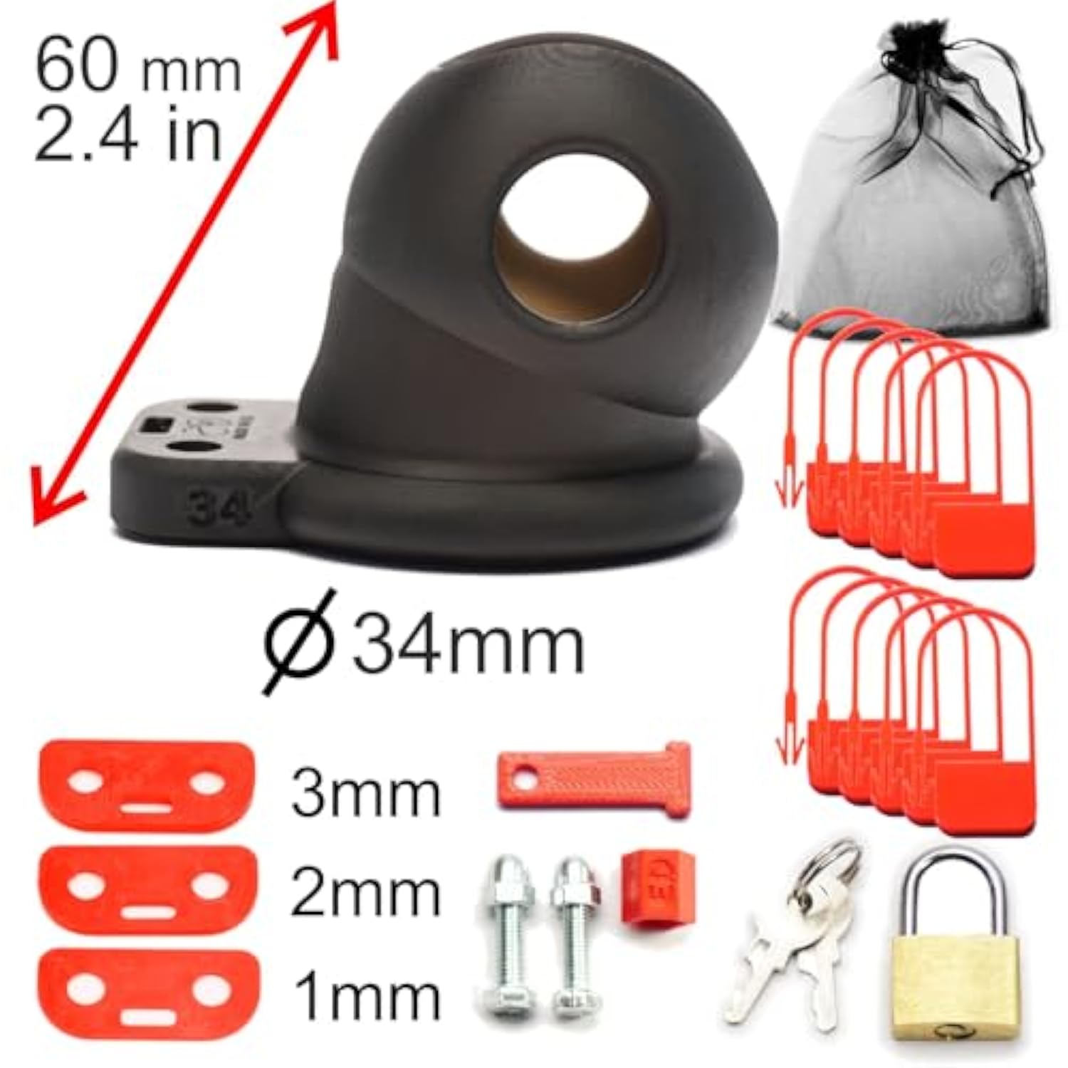 | Python-60 Penis Cage Ring, Inner Diameter 1.34In (34Mm), | | 5 Rings, Inner Diameter: 1.57In, 1.77In, 1.89In, 1.97In, 2.17In (40Mm, 45Mm, 48Mm, 50Mm, 55Mm), | | Padlock With Keys, | | 10 Disposable Fasteners And One Reusable Insert, | | Spacers 0.04In, 0.08In, 0.12In (1, 2, 3Mm), | | Screws (2 Pcs.), Nuts (2 Pcs.), Cap For Easy Tightening, | | Storage Bag. | |