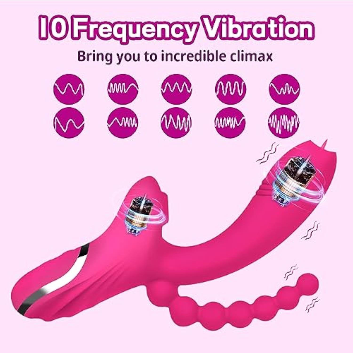 G-Spot Bunny Vibrator Vibrations/Sucking 3 In 1 Vibrators With Vibrating Pull Beads, Waterproof Clitoral Nipple Anal Stimulato, Sex Toys.(Red)