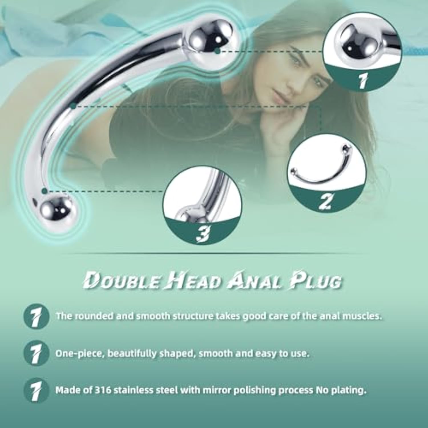G-Spot Prostate Massager Anal Plug Double Dildo Metal Curved Butt Plug Both Ends Different Anal Training Sex Toys For Men Women Couples Masturbation (L)