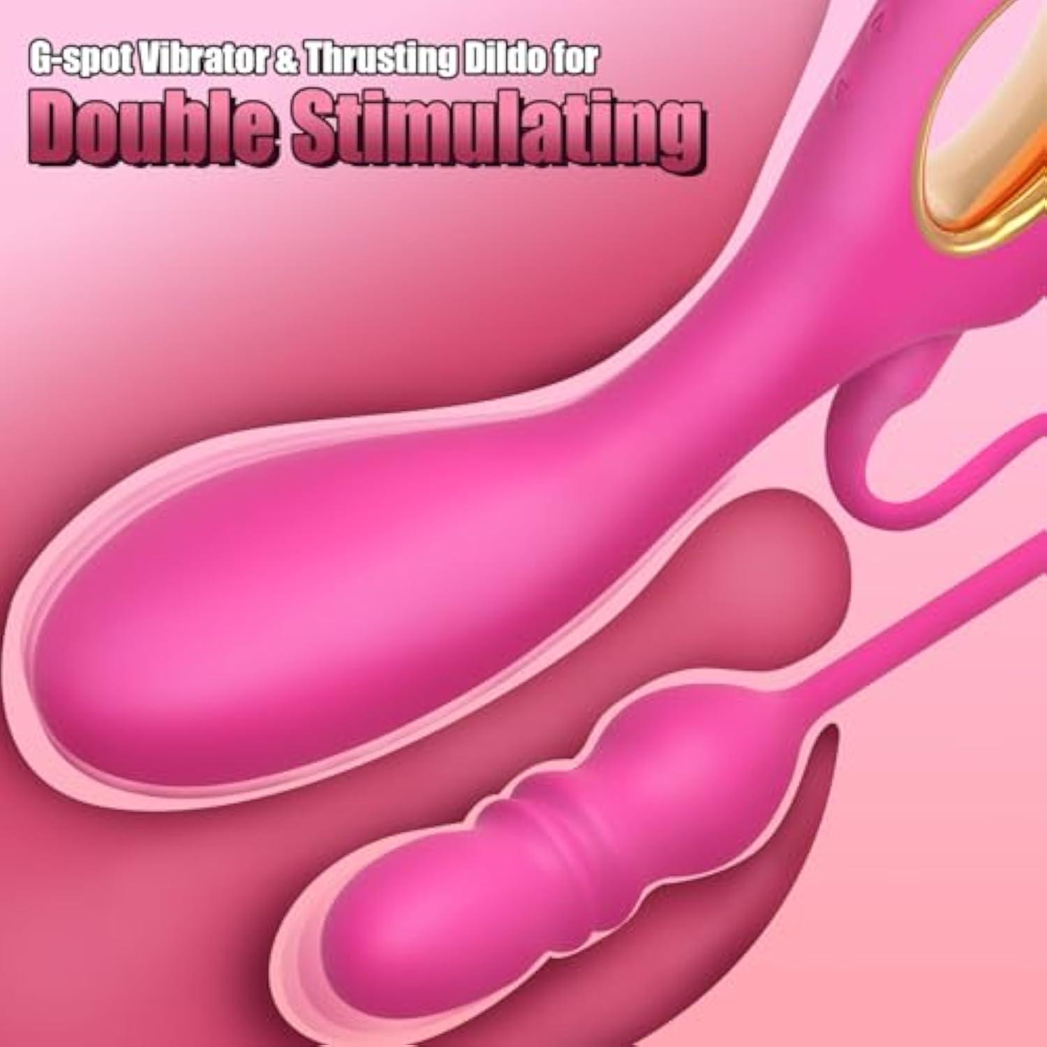 Thrusting × Vibration × Dildo × Anal Plug Rose Sex Toy For Women: G -Spot Vibrator Plus Thrusting Anal Toys Is A Novel Combination That Creates Many Possibilities. You Can Insert The Vibrator Dildo Machine Into The Vagina, First Feel Some Vibration, Then Insert The Anal Toys Into The Anus To Get An Unparalleled Filling Feeling, Turn On The Thrusting Vibration Function To Get More Stimulator. You Can Also Insert The Thrusting Part Into The Vagina, Then It Is A Thrusting Dildo Of Perfect Size. | | 7 Vibration Modes G-Spot Vibrator: The Classic Dildo Vibrator Never Goes Out Of Style! The Dildo Vibrator Is Curved At A 30° Arc, Perfectly Fitting The Curve Of The Female Vagina And Accurately Touching All Sensitive Points On The Inner Wall. The Rose Sex Toy Is Tapered As A Whole, With The Thinnest Part At The Vaginal Opening And The Thicker Part At The Glans, Which Conforms To The Female Body Structure. The Thick Dildo Brings More Stimulation To The G-Spot. The G Spot Vibrator Work Separate. | | 7 Thrusting Modes Anal Vibrator: Compared To Men, Women Get Pleasure From The Filling Feeling Of The Butt Plug In The Anal Area, And Stimulating The Anus While Using A Dildo Vibrator Is A New Experience. I Believe Many Experienced Women Have Already Done This. The Purpose Of This Adult Toy Is To Meet Your Two Needs With One Toy. The Thrust Vibrator Can Also Be Used As A Thrusting Dildo And Work Separate. | | 2 Powerful Motor Dildo Vibrators For Solo Or Couple Play: The Anal Plug Part And Penis Vibrator Are Equipped With Independent Motors And Have Independent Switches, So You Can Enjoy Two Kinds Of Deliciousness Alone, Or Play With Your Partner, Set The Mode To The Same Frequency, And Vibrate At The Same Time To Produce Orgasmic Spray. It Can Also Be Used For Foreplay Games For Couples Such As Clitoral Nipple Stimulation. | | Body-Safe Silicone Material: We Attach Great Importance To The Health Of Our
