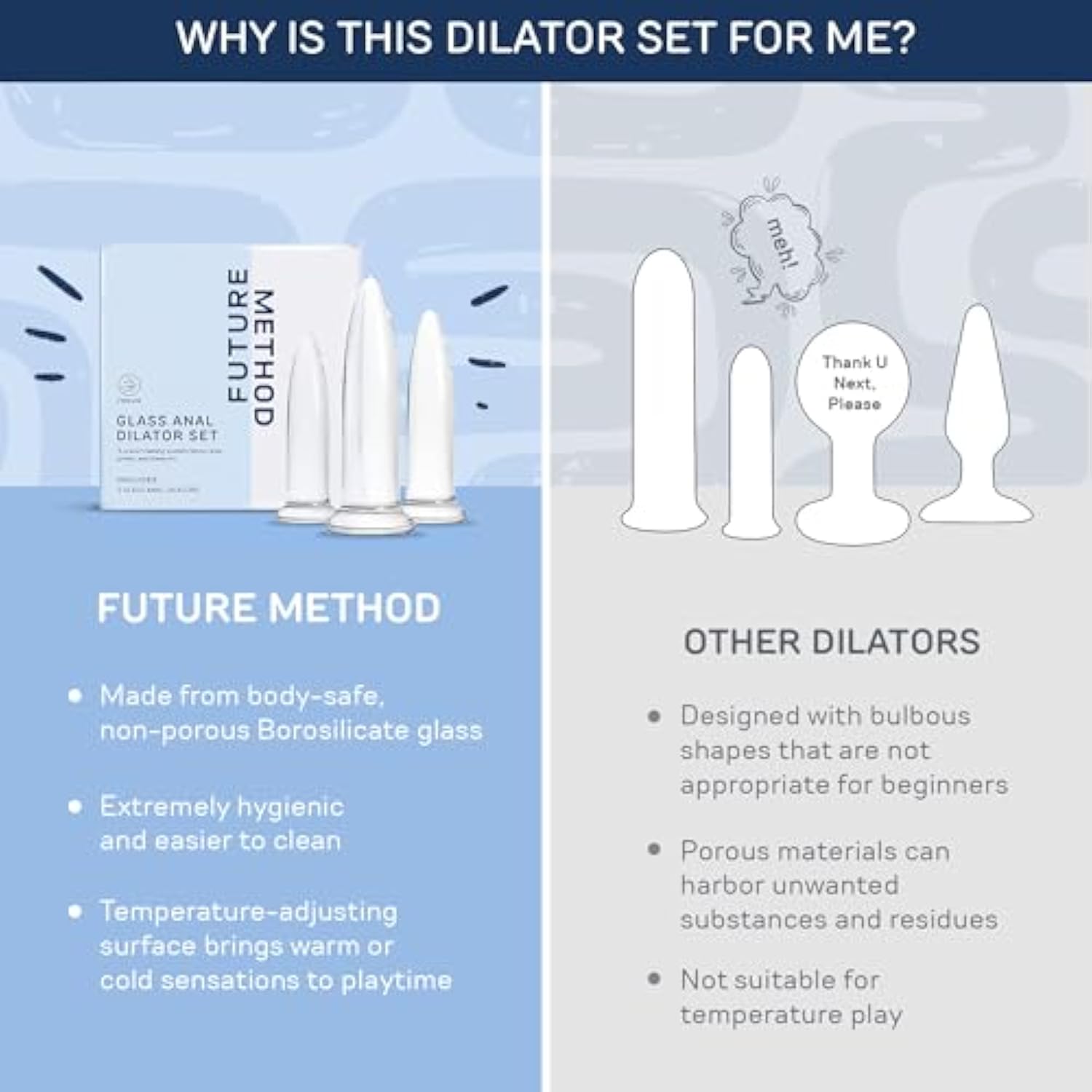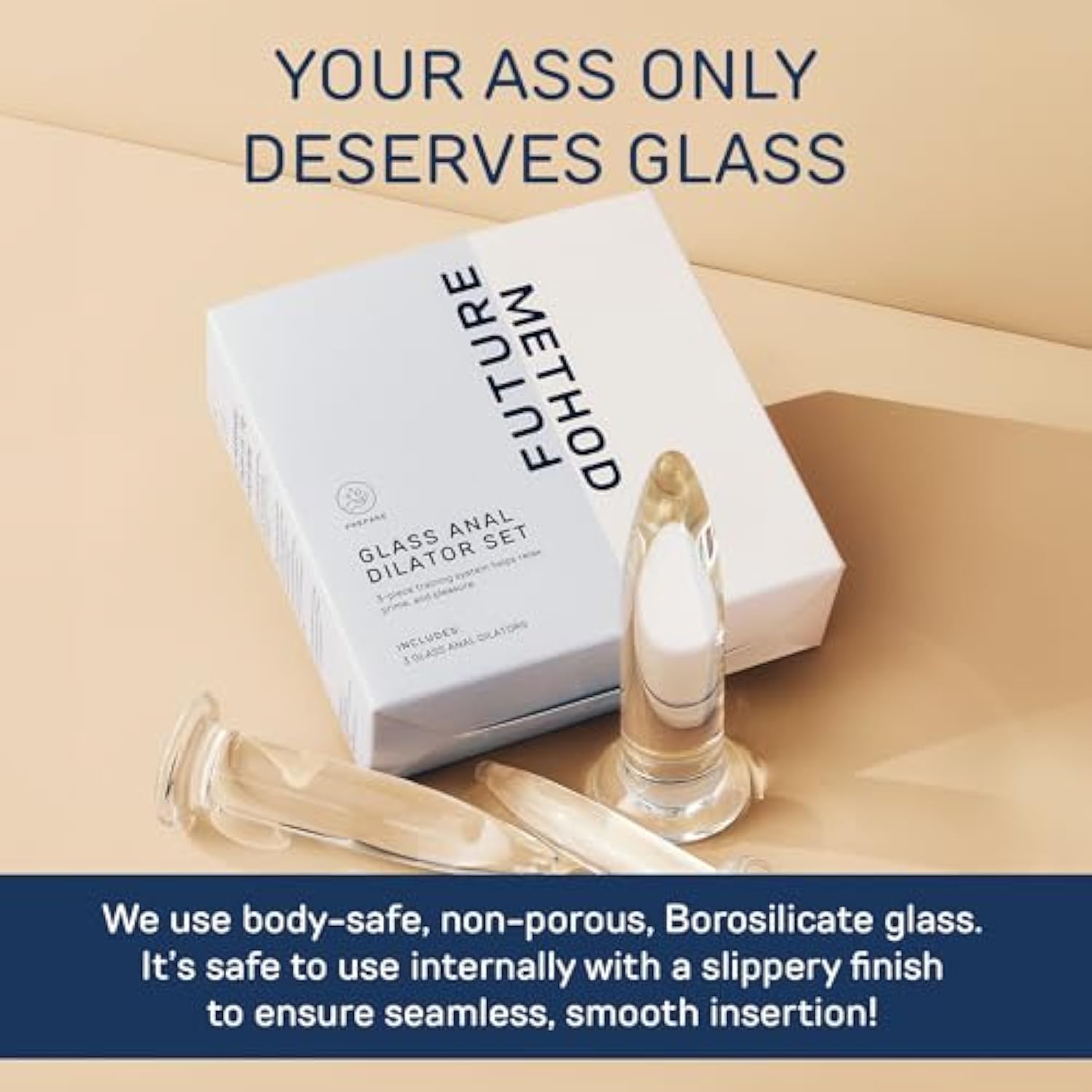Glass Anal Dilator Set, 3-Piece Trainer Butt Plug Kit, Body-Safe Borosilicate Glass Plugs With Temperature-Adjustable Surface