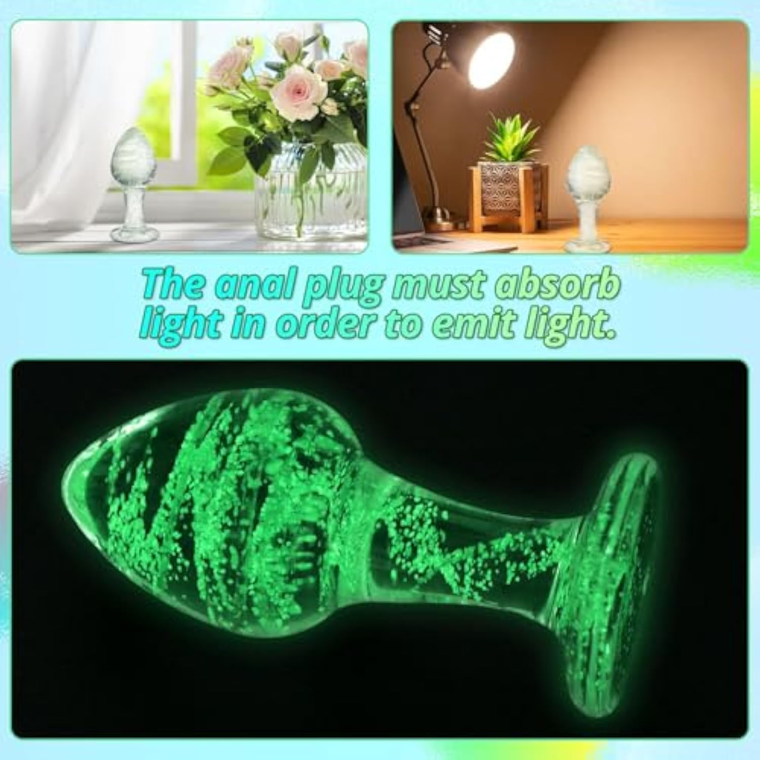 Glass Anal Plug Luminous Butt Plug Glass Plug G-Spot Stimulator Prostate Massager Vaginal Masturbation For Women Men Couples Beginners Valentine'S Gift Sex Toys (M)