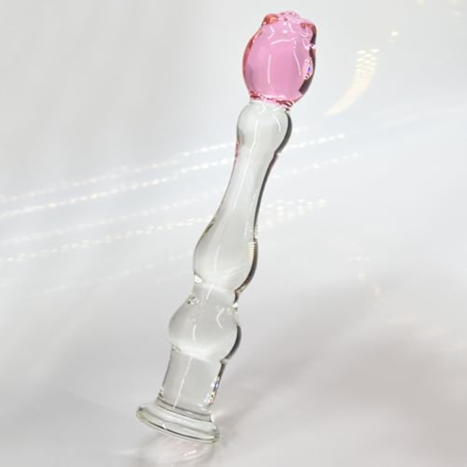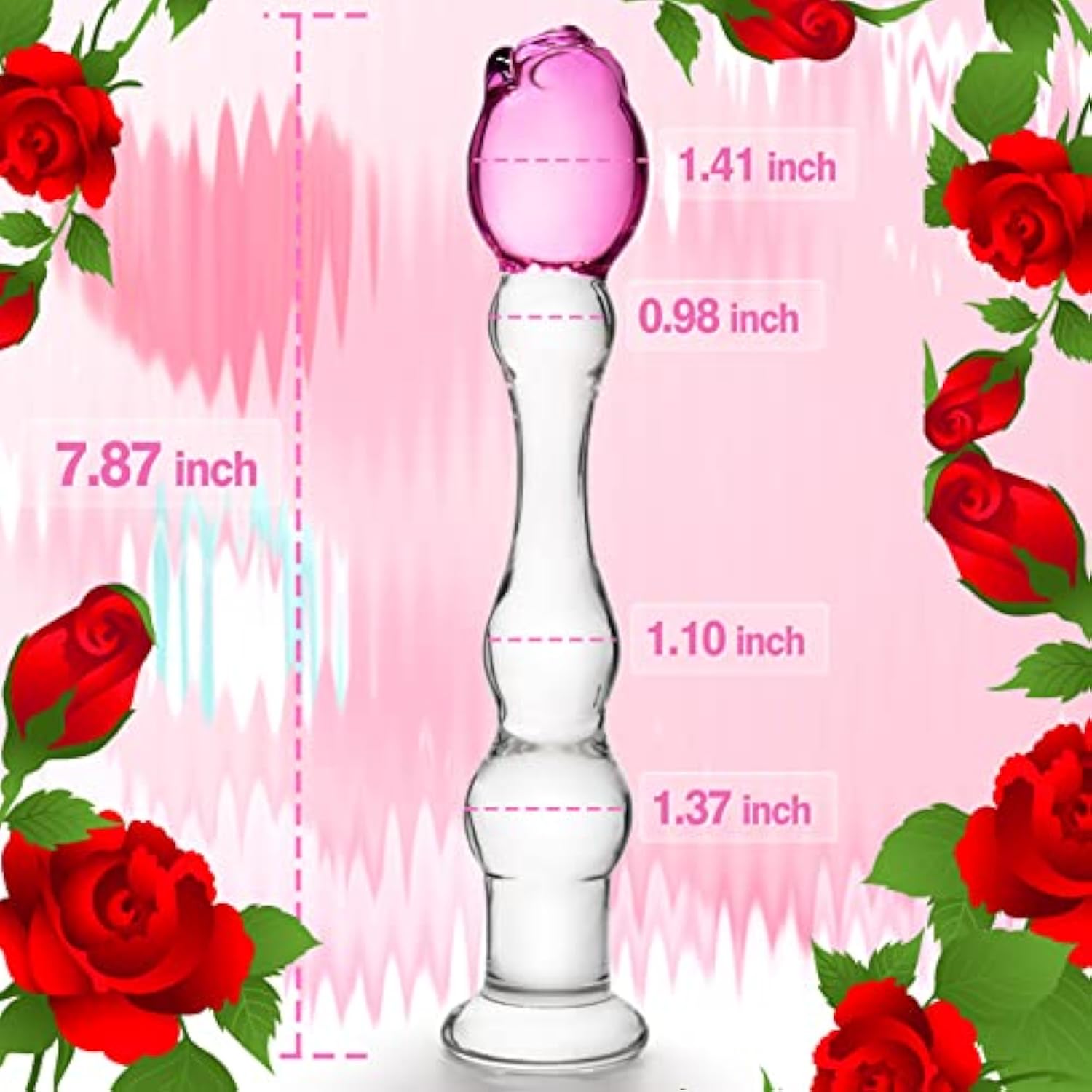 Glass Anal Plug Rose G-Spot Dildo Butt Plug With Gradual Beaded Ridges Prostate Massager Sex Toy For Men Women Masturbation