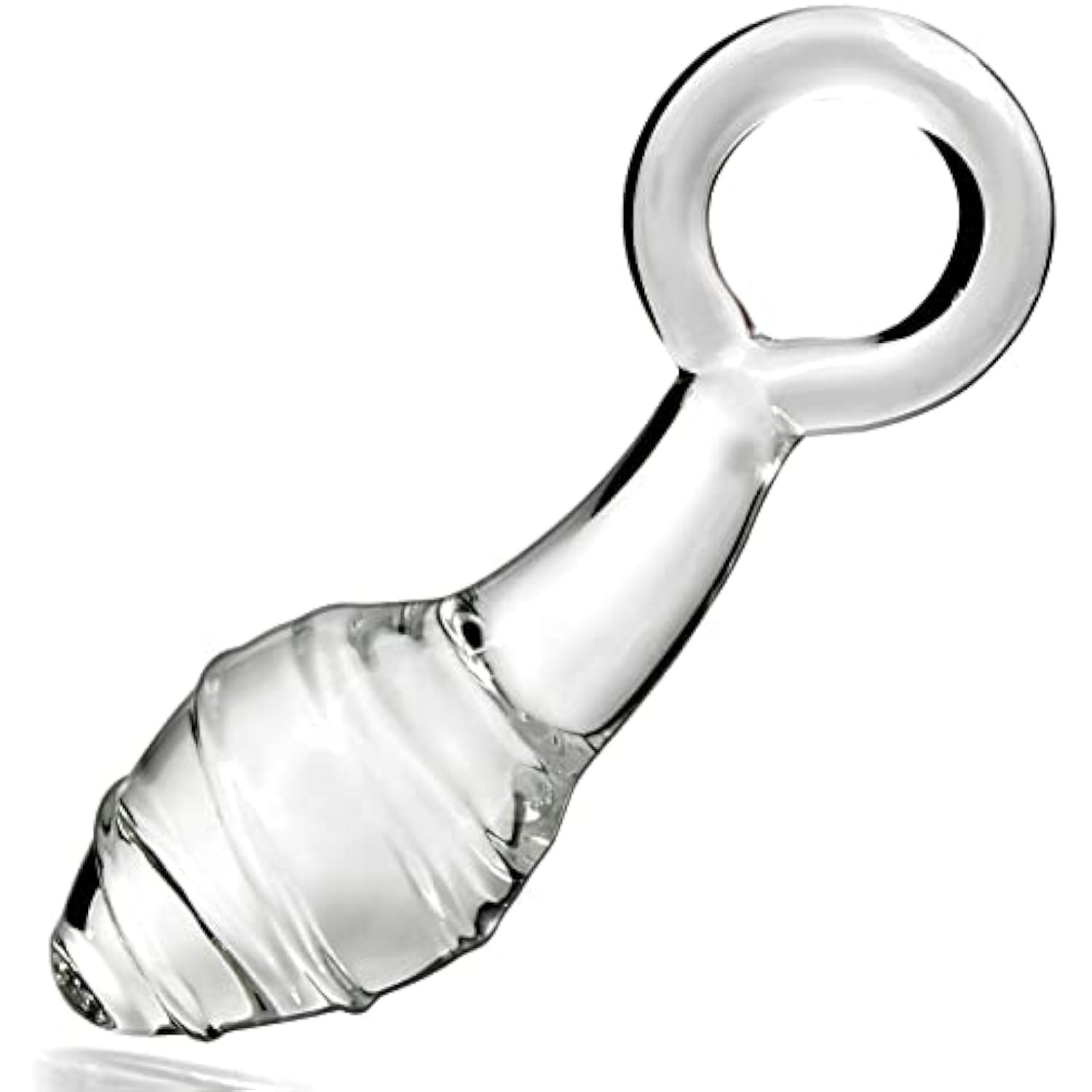 Glass Butt Plug With Pull Loop Anal Plug Prostate Massager With Spiral Texture, Long Neck And Tapered Head Fetish Anal Dilator Masturbation Sex Toy For Men Women, 5.90 X 1.77 Inch Transparent