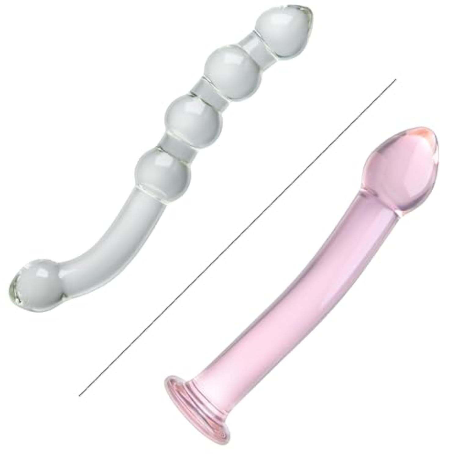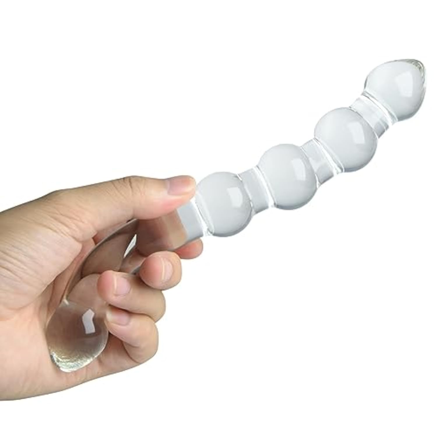 Glass Double-Ended Dildo 8.46Inch Clear G-Spot Dildo Pleasure Wand With Beads + 6.88 Inch Pleasure Wand Dildo Vaginal G-Spot Anal Play For Men Women