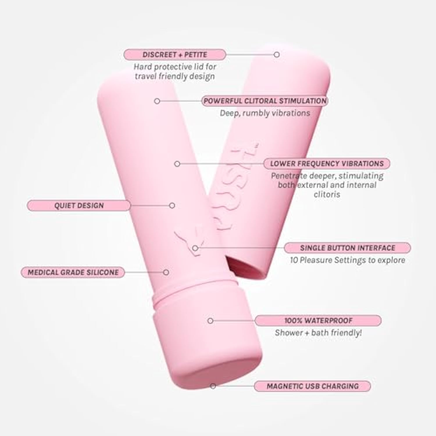 Gloss Bullet Vibrator - Travel-Size Clitoral Stimulator, Powerful Personal Massager With Cap, Waterproof, Rechargeable (Pink)
