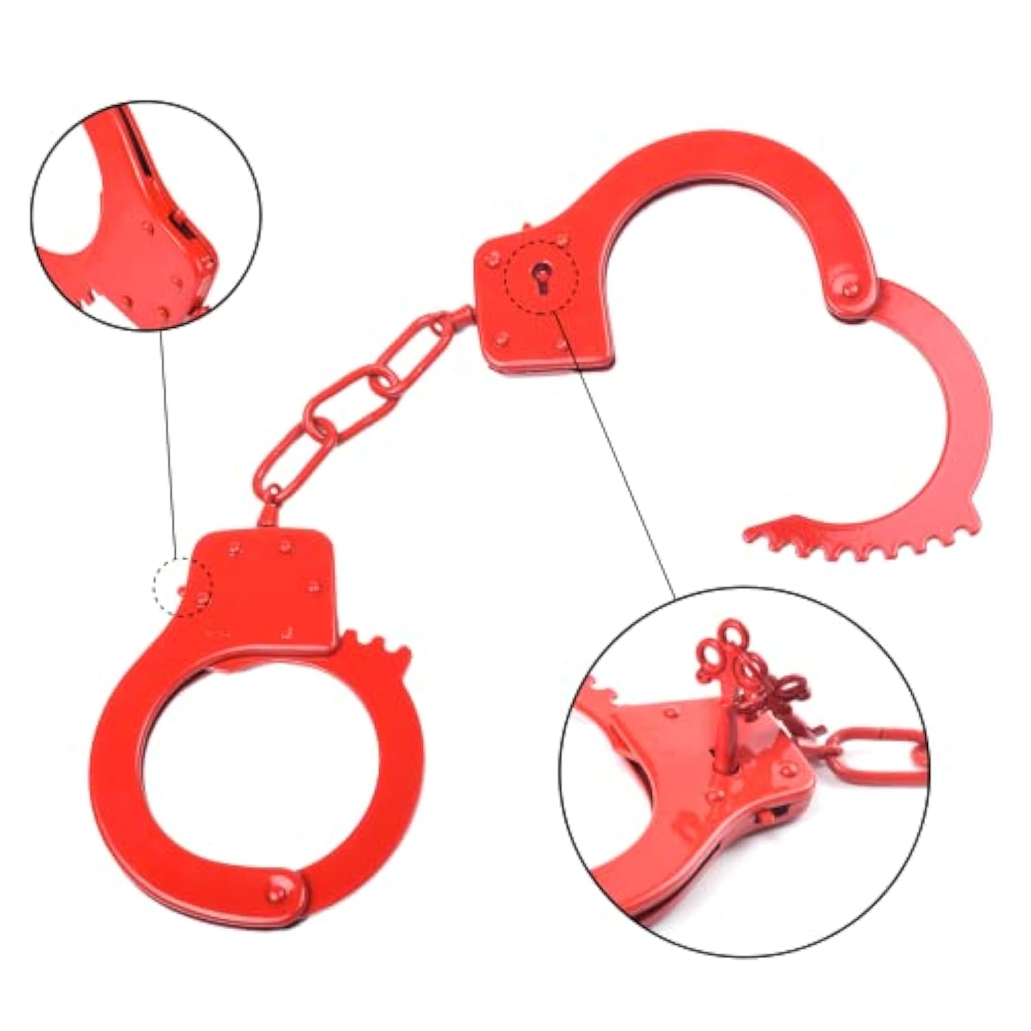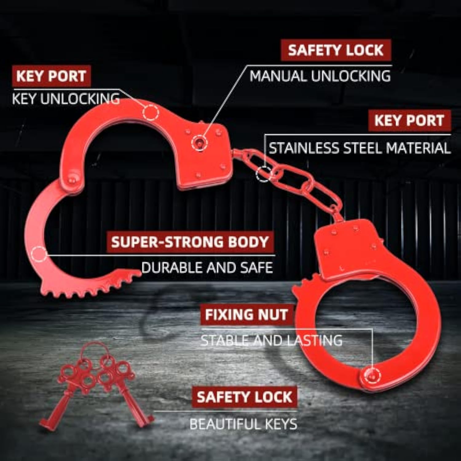 Handcuffs Double Lock Steel Police Edition Professional Grade Handcuffs,Hand Cuffs Cop With Keys (Red)