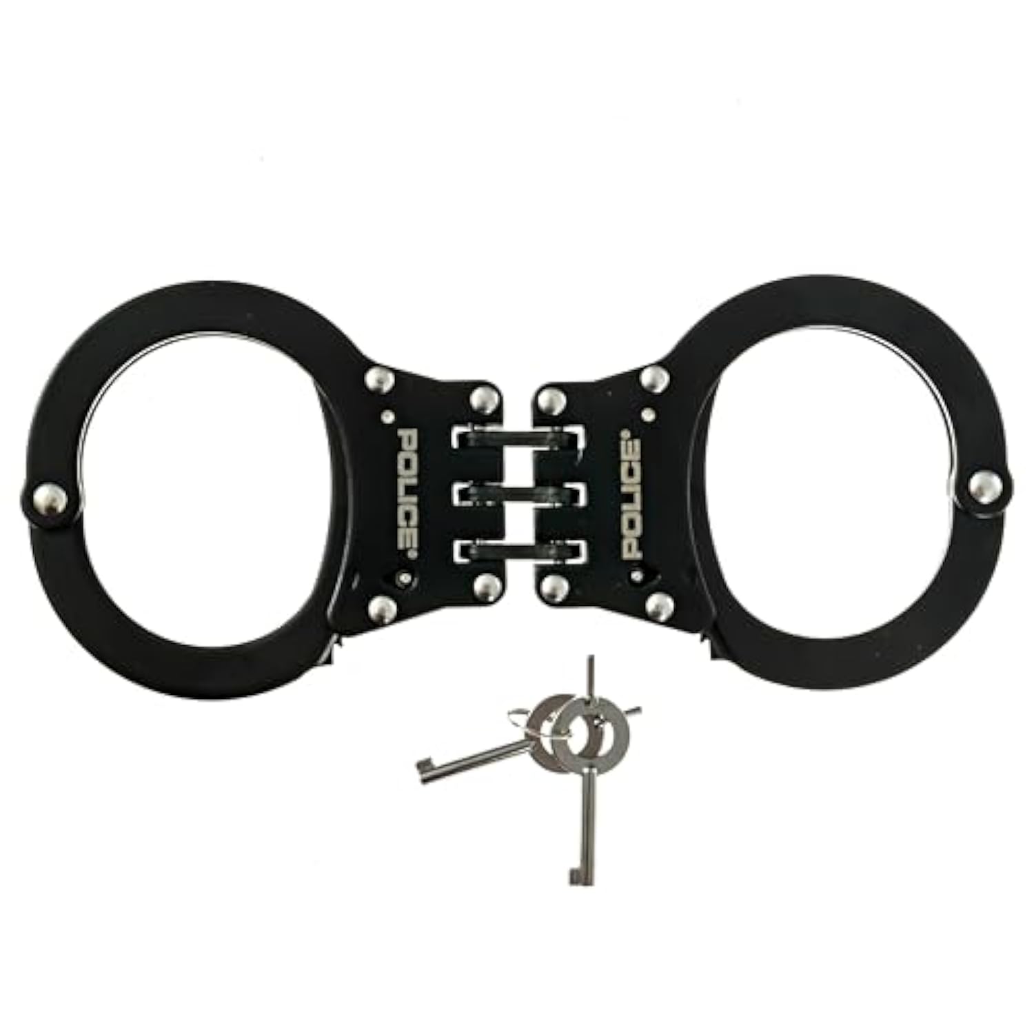 Handcuffs – Heavy Duty Police Grade Professional Steel Hand Cuffs, Hinged Double Lock Metal Black Finish for Security & Personal Safety