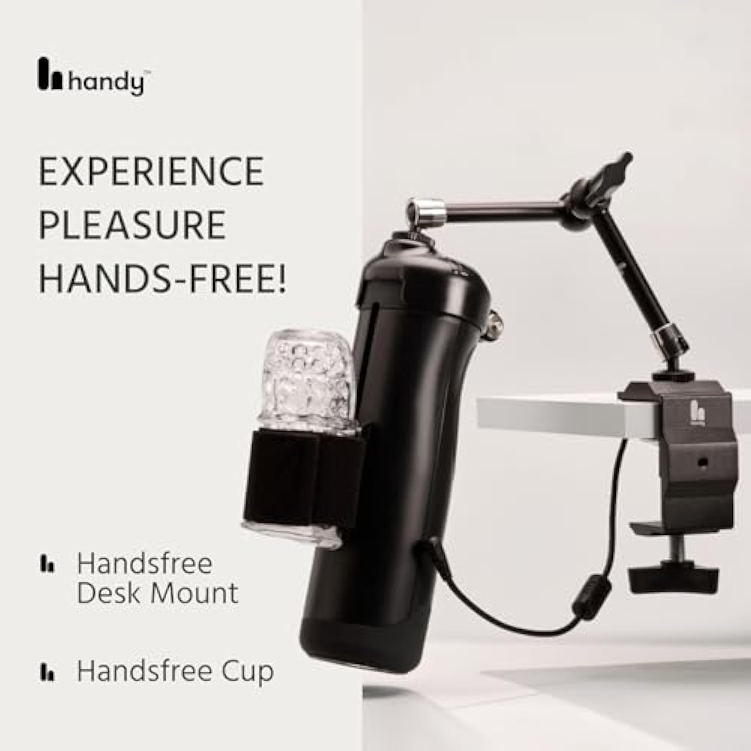 HANDY Handsfree Desk Mount with Cup Bundle - Automatic Male Masturbator and Clamp Holder, Adjustable Sex Toy Stand