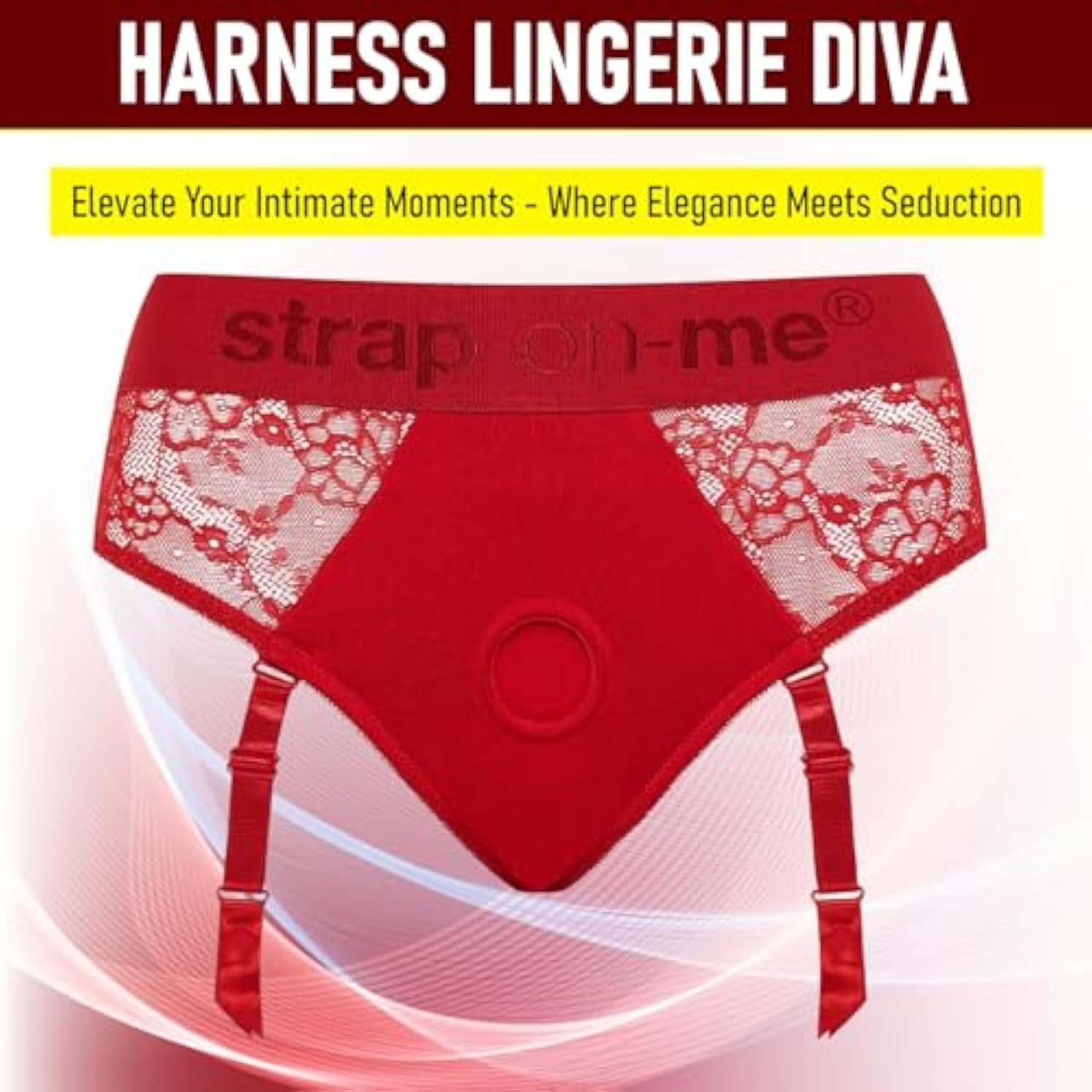Harness Diva Red - Adult Sex Toys With Lace & Microfiber, Delicacy, Elegance, And Comfort. Ideal For Pegging Or Strap On Toys For Lesbians, Adjustable Strap & Stretchable
