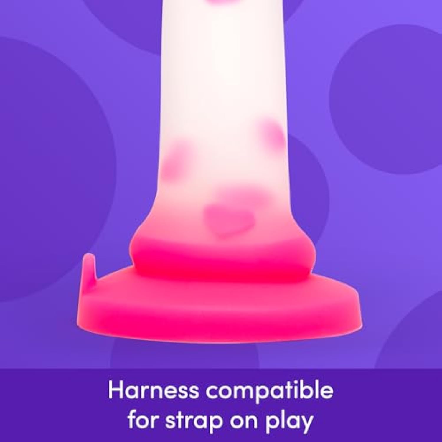 Heart Realistic Dildo | 8 Inch Suction Cup Dildo For Women | Liquid Silicone Curved Strap On Harness Compatible | Curved G Spot Stimulator | Adult Sex Toys For Couples | Clear & Pink