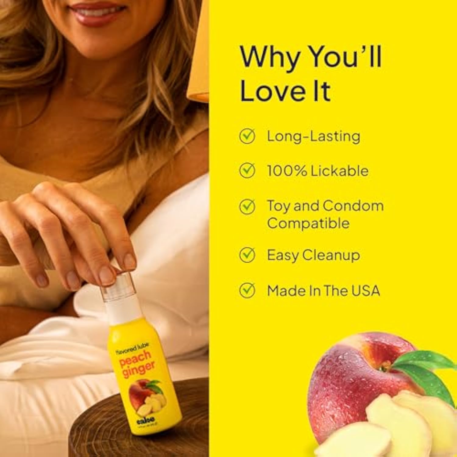 Hello Peach Ginger Flavored Personal Lubricant - Water-Based Lube - No Aftertaste, Easy Clean-Up - Vegan, Sugar-Free, Gluten-Free, & Hormone-Free - 1.7 Fl Oz
