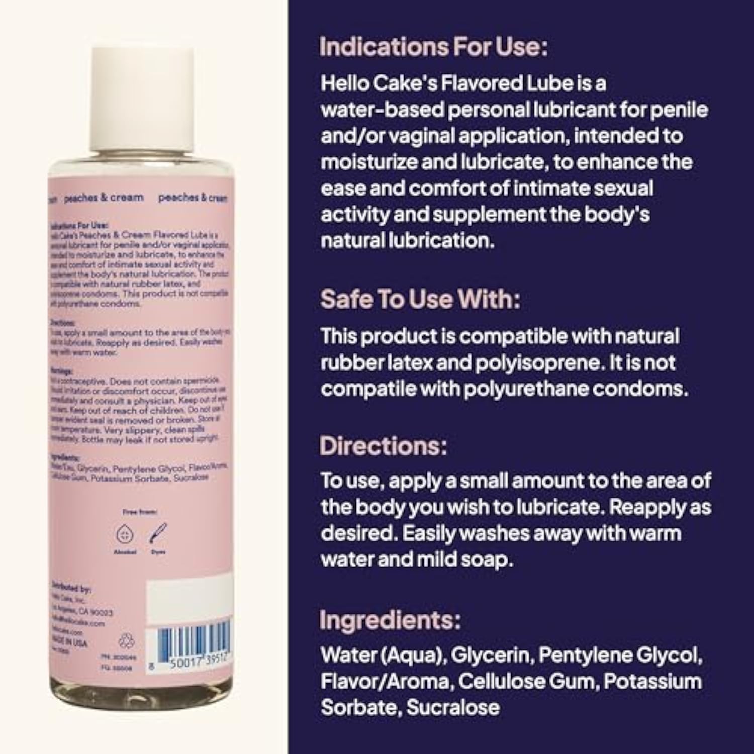 Hello Peaches & Cream Flavored Lube - Water-Based Personal Lubricant - Vegan, Sugar-Free, Gluten-Free - Easy Clean-Up - For Men, Women, And Couples, 8 Fl Oz