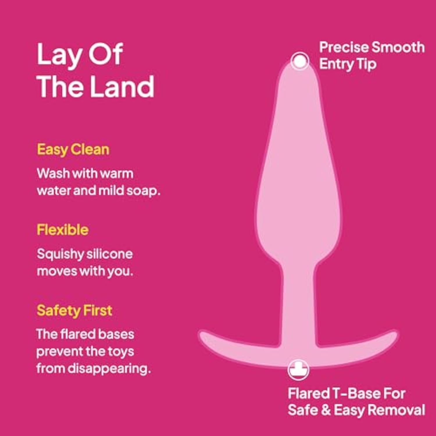Hello Tush Pops - Butt Plug Training Set - 3 Sizes For All Levels Of Anal Play - Tapered Tip With Flared T-Base - Body-Safe Silicone, Adult Sex Toy For Men, Women And Couples