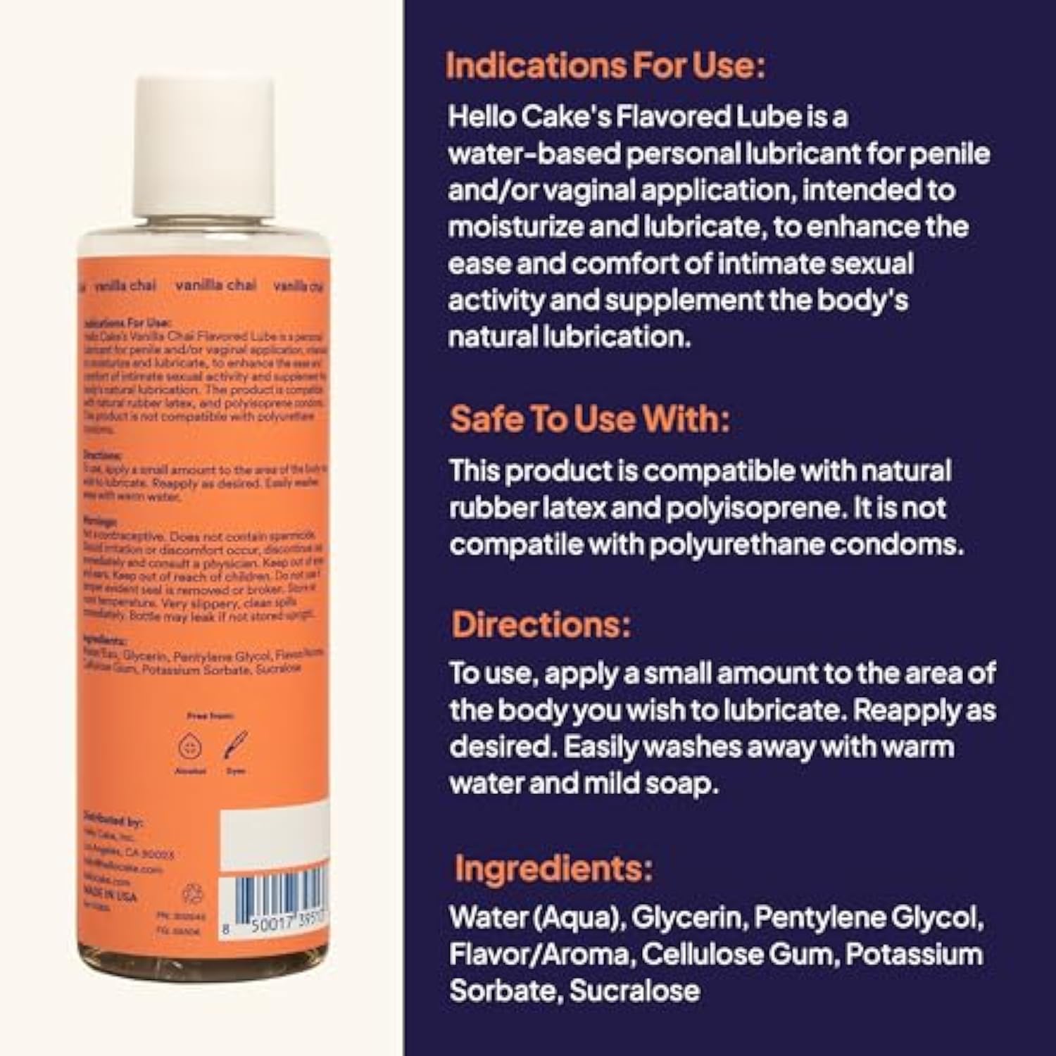 Hello Vanilla Chai Flavored Lube - Water-Based Personal Lubricant - Vegan, Sugar-Free, Gluten-Free - Easy Clean-Up - For Men, Women, And Couples, 8 Fl Oz