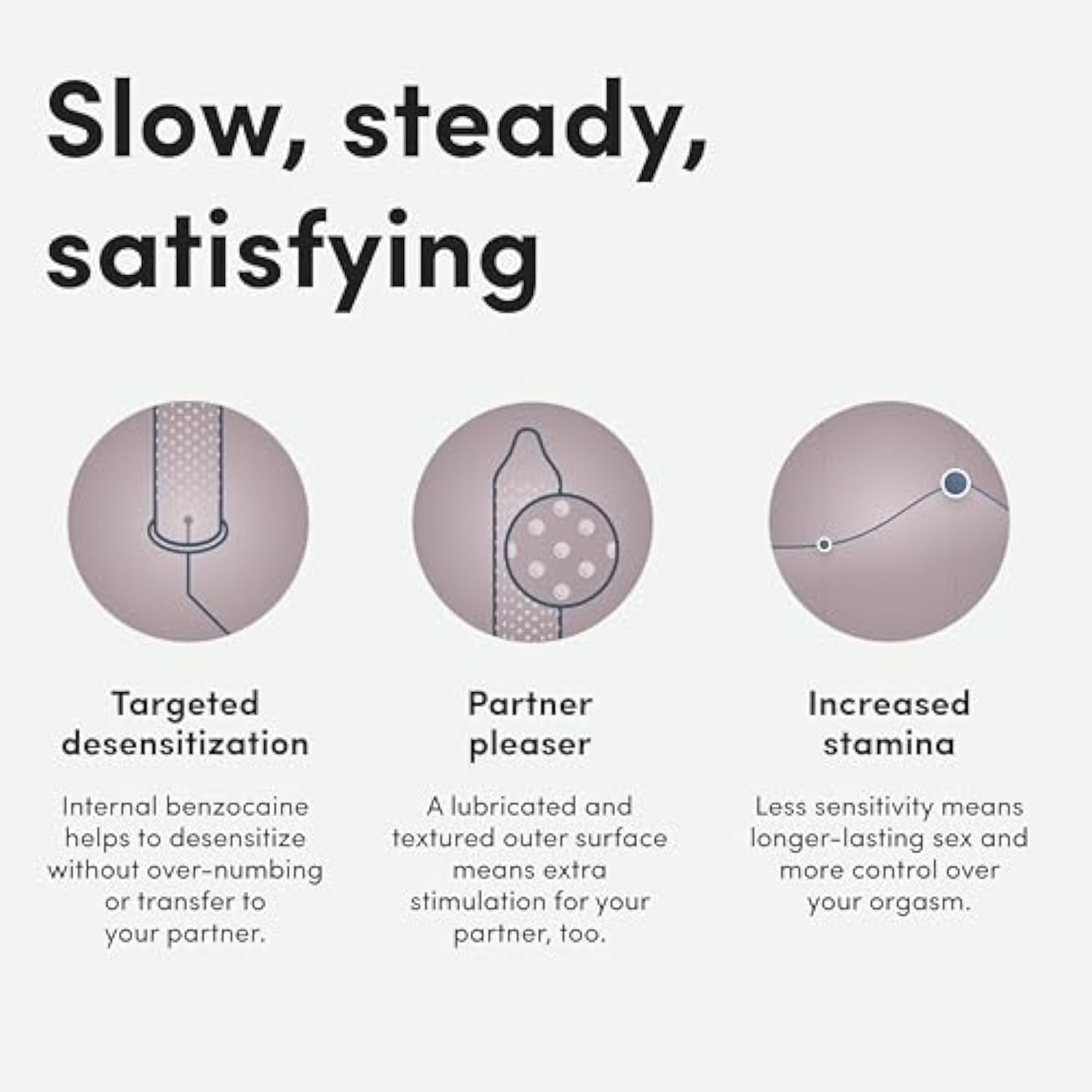 | Contains 4.5% Benzocaine Lubricant Inside To Desensitize The Penis Without Losing All Sensation | | Studded External Texture | | Silky, Smooth Lubricated Inside | | Studded External Texture: A Studded Condom With Silky-Soft Lubrication Means Extra Stimulation For Your Partner | | Discreet Mess-Free: Keep A Trick Up Your Sleeve With These Climax Delay Condoms. Designed To Be Discreet - Fits In Wallets, Pockets, And Bags. No Added Fragrances | |