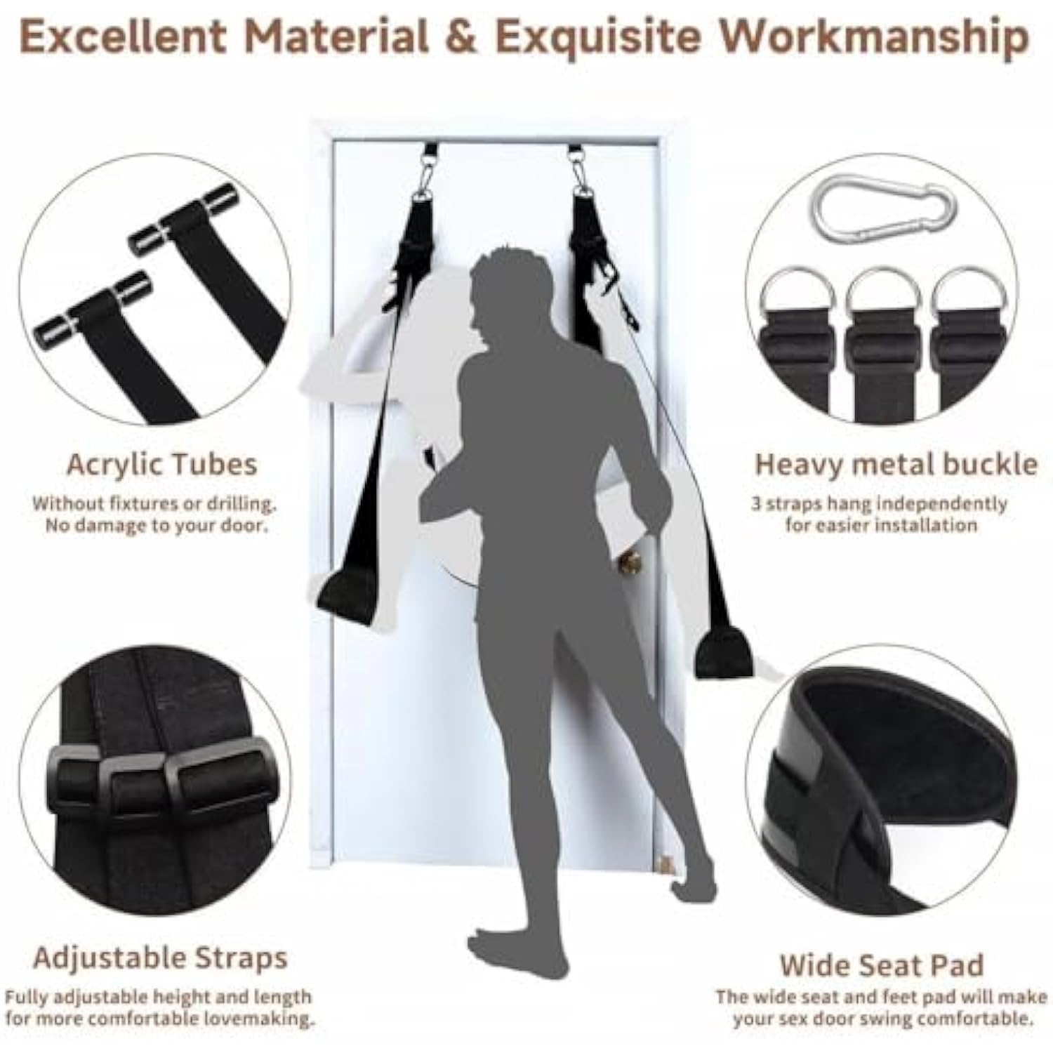 Hold to 300Lbs Over The Door Swing Sex Adult Swing for Couples Sex Frequent Flyer Door Swing Adult Door Swing for Couples Bedroom Hanging Swing Sling Heavy Duty Sex Furnitures Sweater F3A