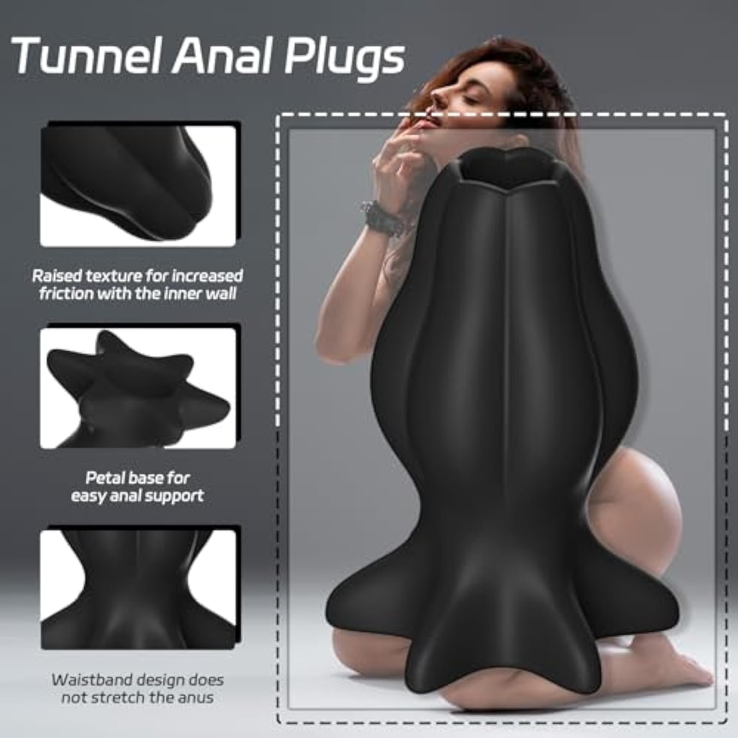 Hollow Butt Plug With Matched Stopper Black Silicone Anal Dialator For Women Speculum Anus Tunnel Plug For Anal Peeping Sm Adult Sex Toys (Large)