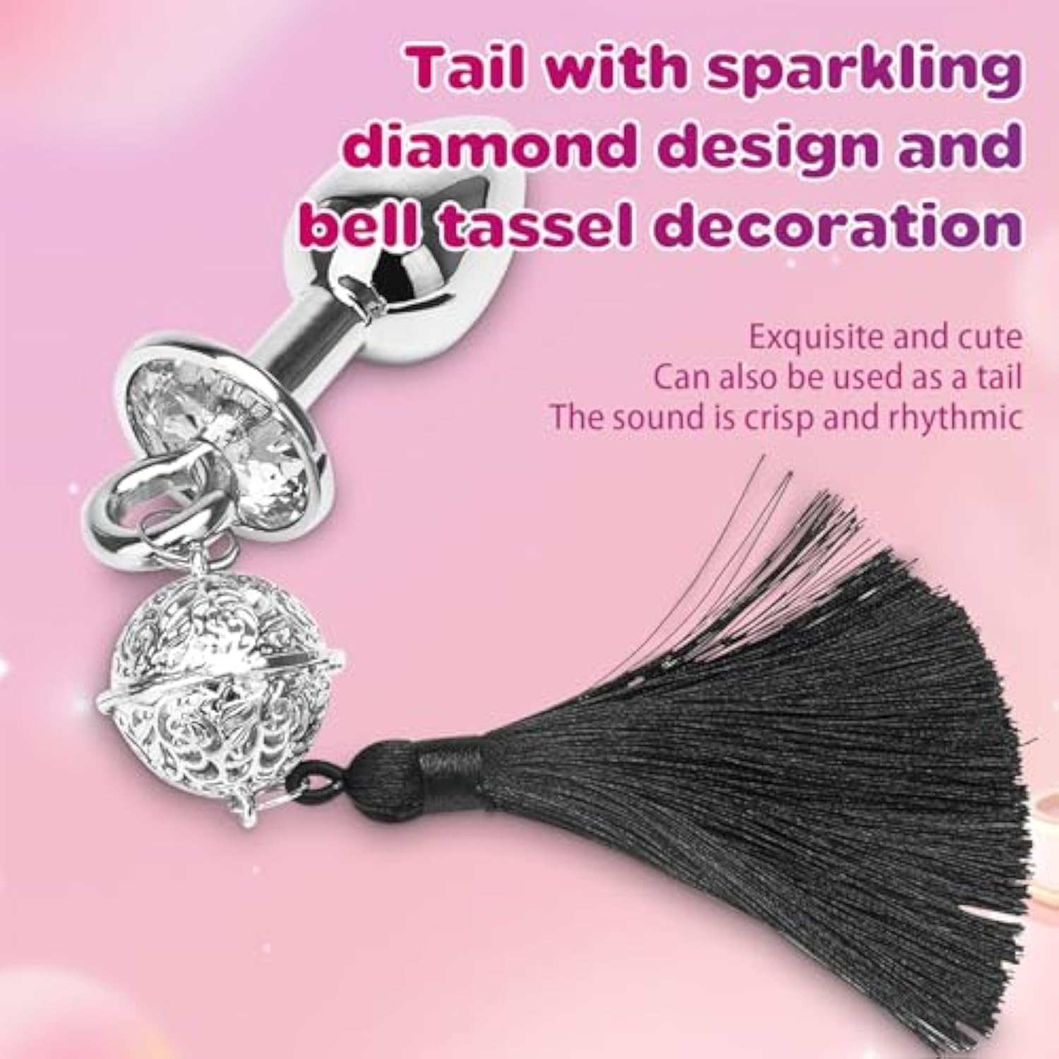 Hollowed-Out Sex Toy Flower Bell Anal Plug Erotic Products Binding And Adjusting Tassels Bell Metal Anal Plug(Black)