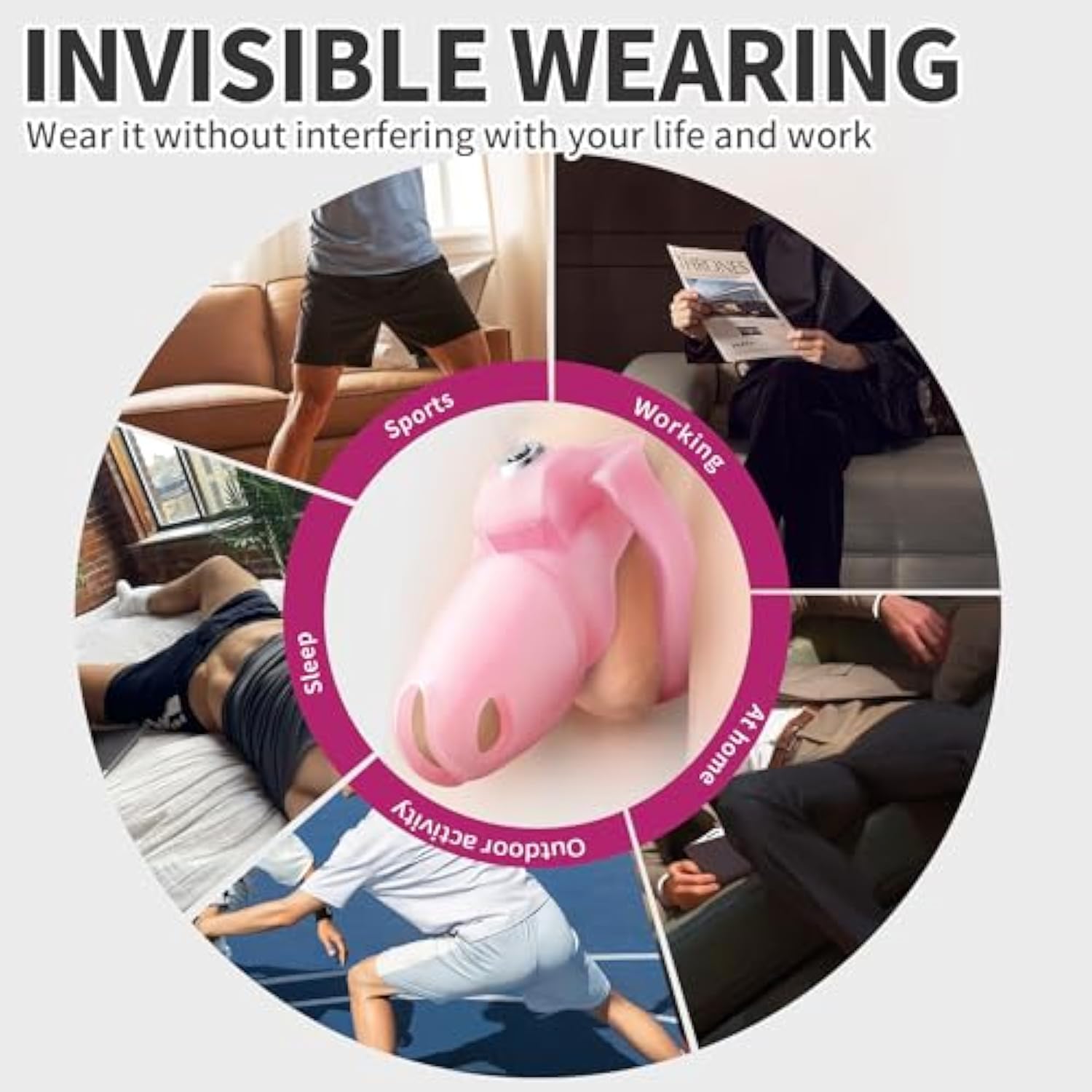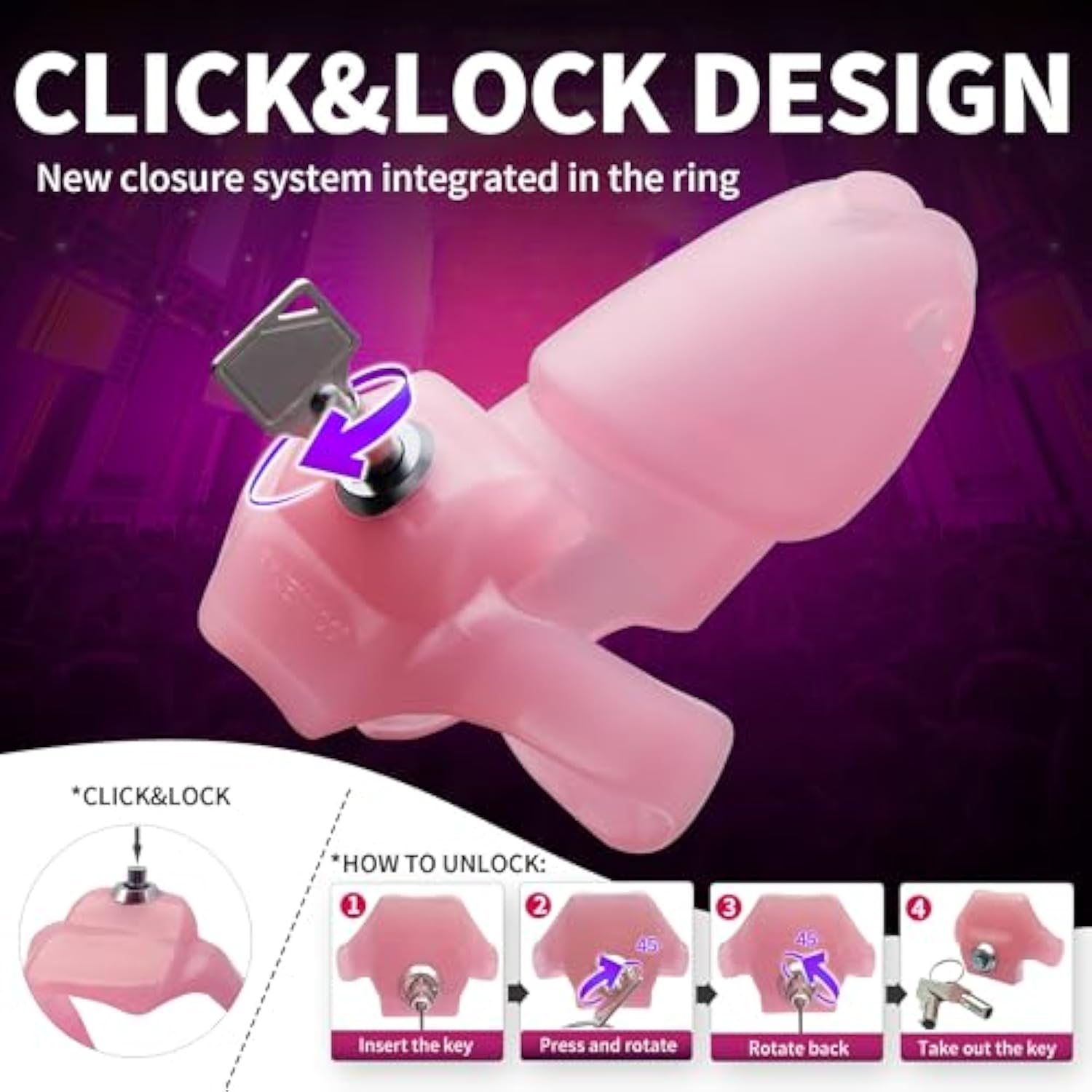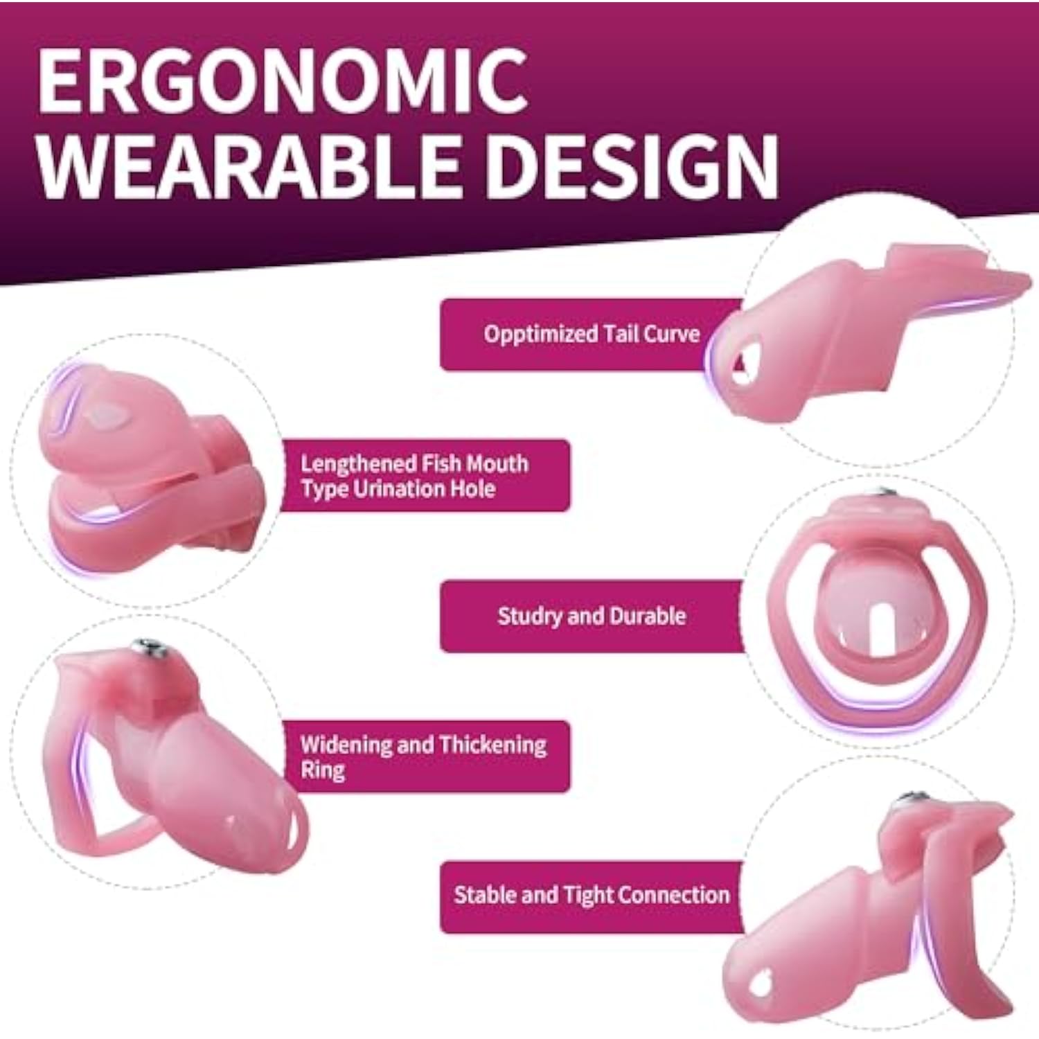 Ht-V5 Male Chastity Cage - Lightweight Resin Male Chastity Cage With Click&Lock Key | Ergonomic Design| Bondage Gear &Adult Sex Toy For Men – Includes 5 Ring Sizes (Pink, Nub)