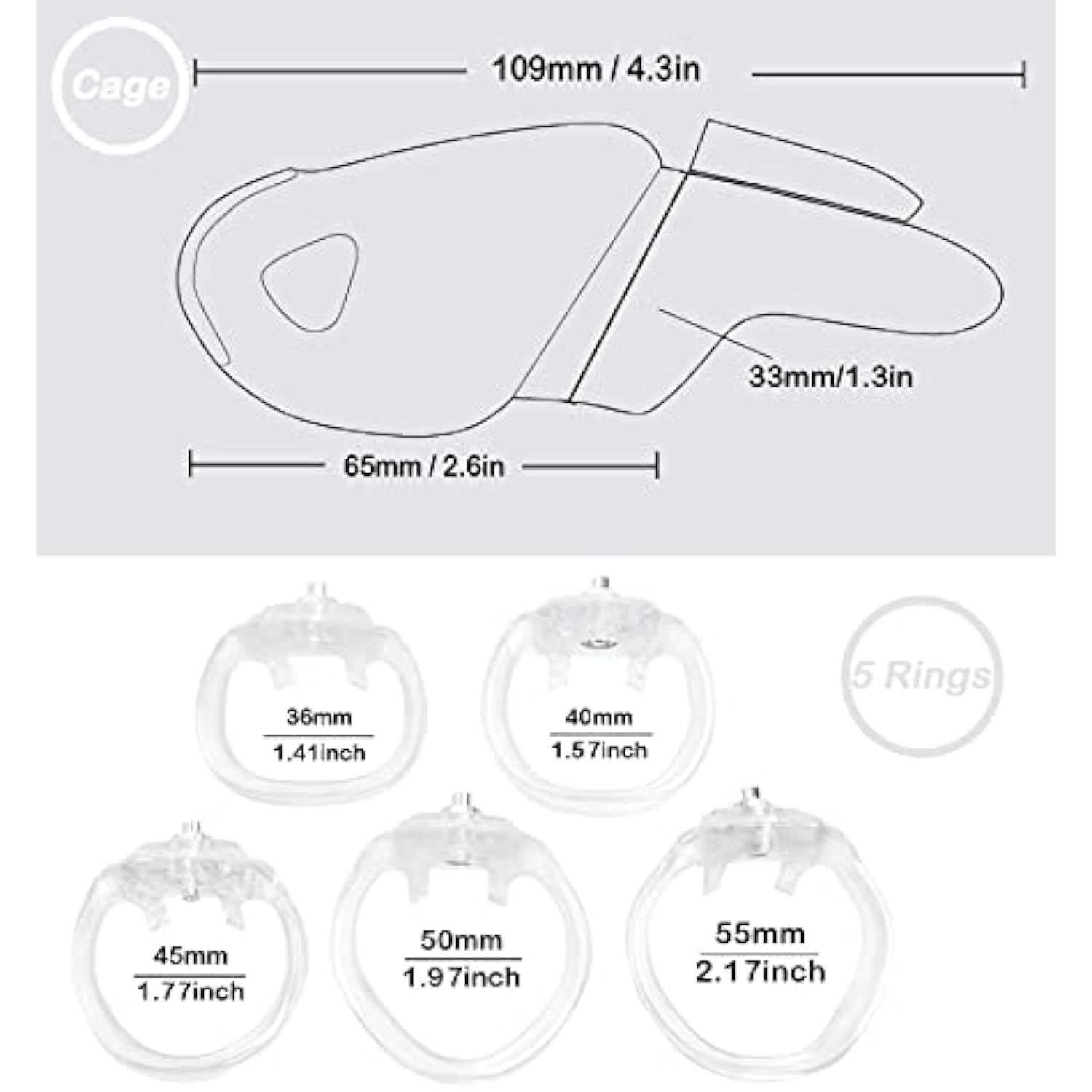 Ht-V5 Male Chastity Device Leightweight Chastity Cage Resin Ergonomic Breathable Chastity Devices With Latest Button Lock And Exclusive Keys Maxi (1.97" Ring(50Mm), Clear)