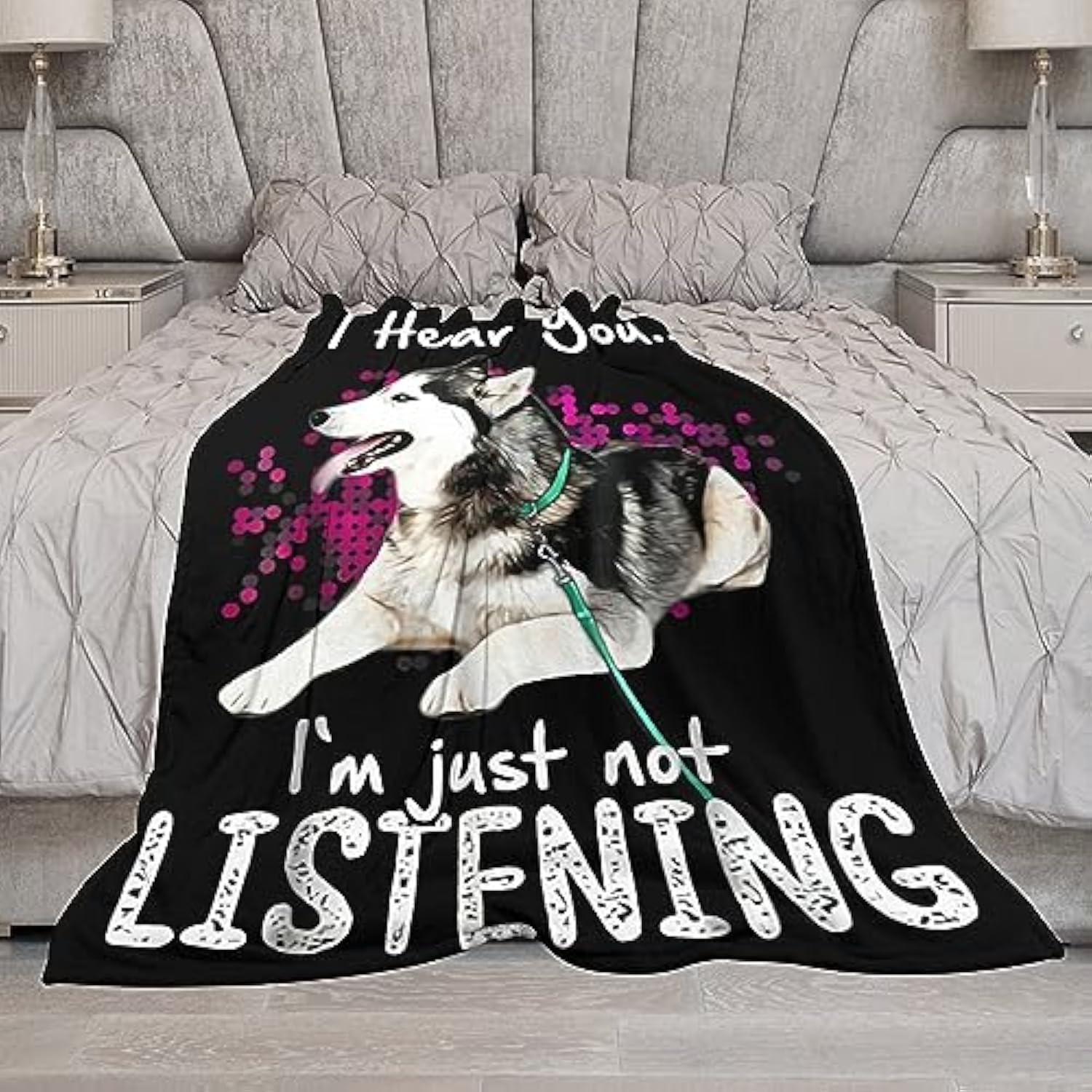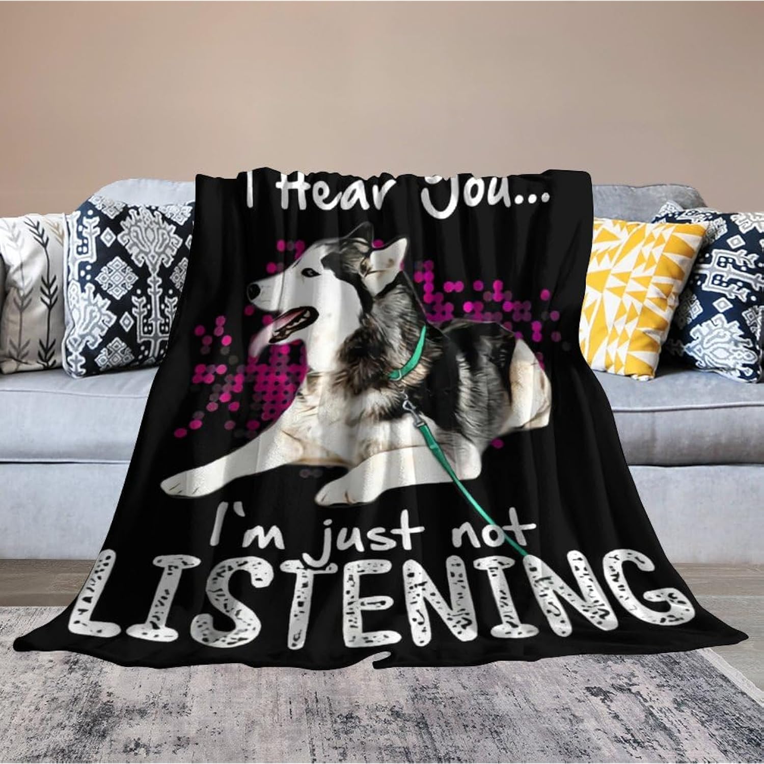 Husky Dog Blanket - Funny Throw Blanket For Kids & Adults, Soft Warm Cozy Fleece, 40"X50"