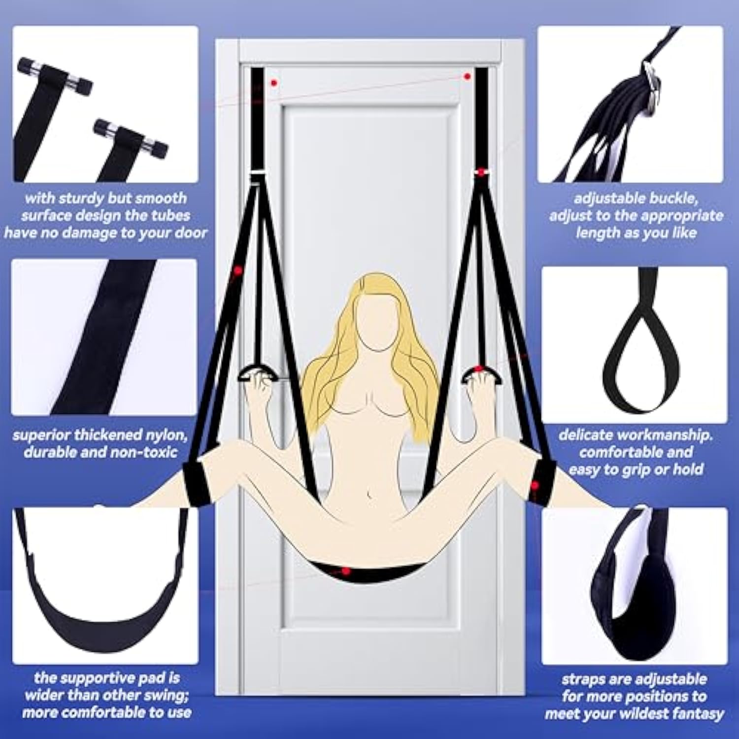 =- With Our High-Quality Indoor Sex Swing, Swing Your Way To Ecstasy. Discover The Hidden Uses For Doors That May Be Converted Into Love Swings With The Aid Of This Bdsm Bondage Constraint Kit. Enjoy The Most Comfortable Postures Your Body Permits By Using
