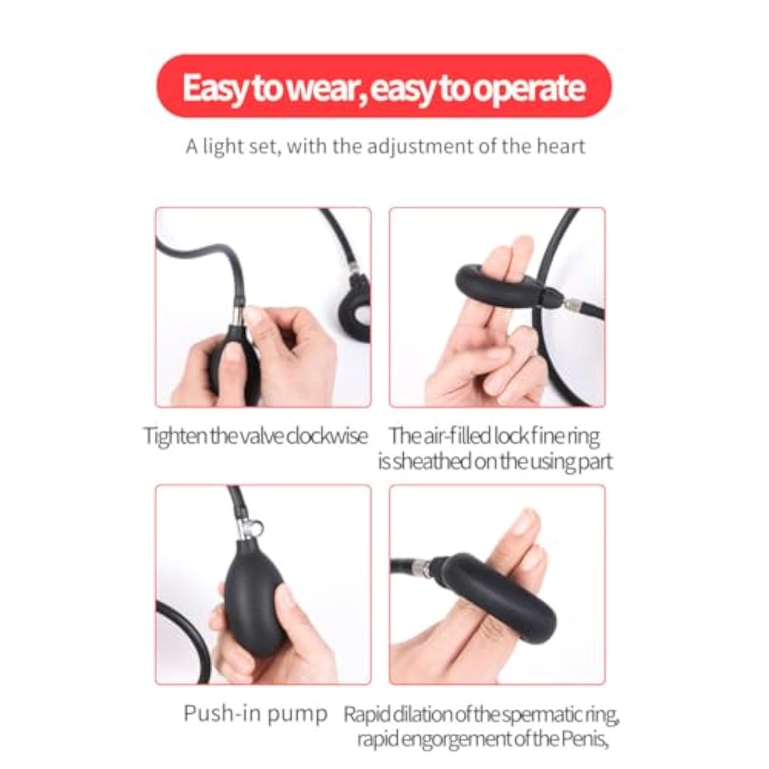 Inflatable Cock Ring, Adjustable Silicone Penis Ring, Sex Toy For Men, Male Masturbation Stimulation Training Ring
