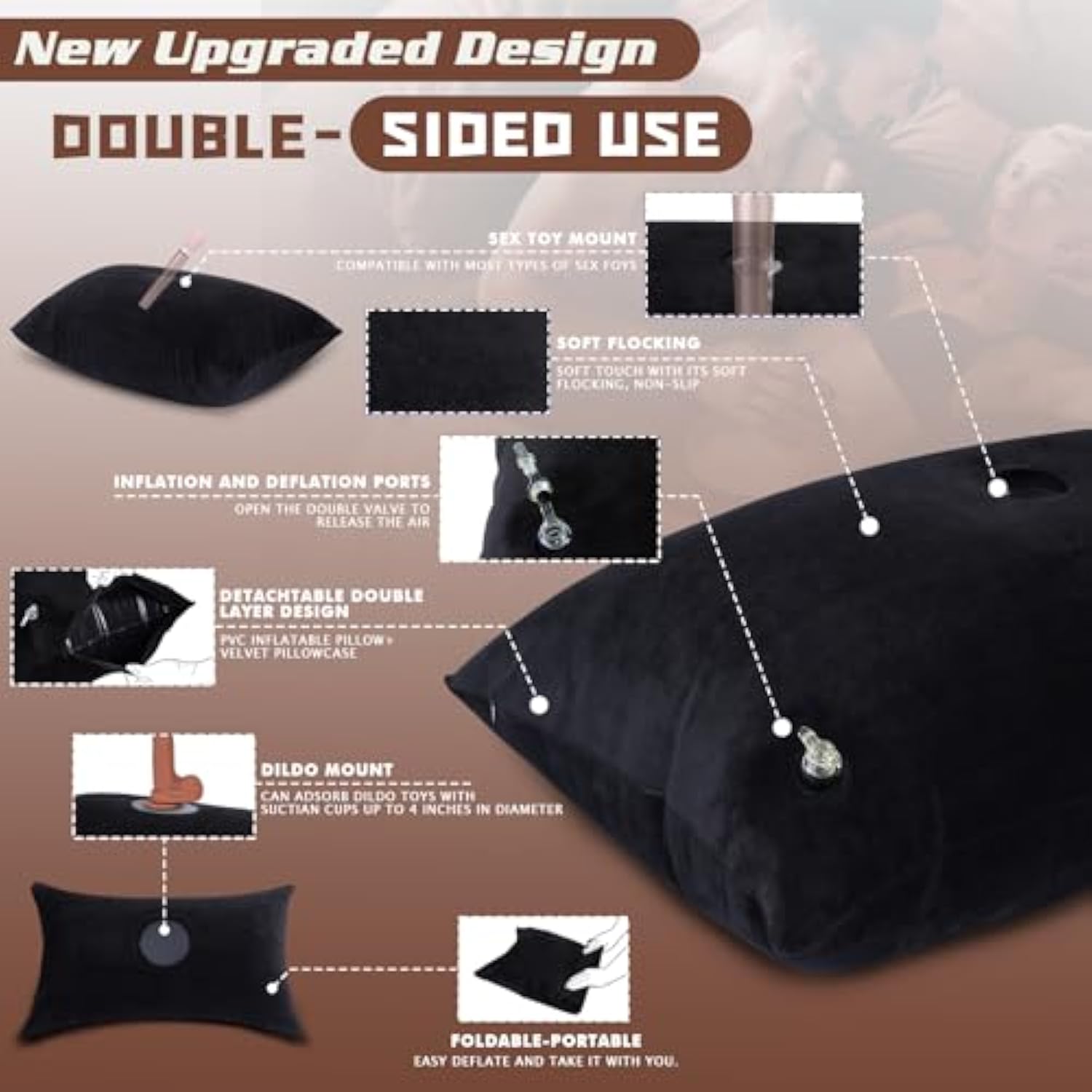 | Multifunctional Inflatable Pillow: Get Ready For An Incredible Journey On This Inflatable Sex Pillow Toy Ride, Which Is The Perfect Invitation To Indulge In Your Fantasies And Experience Unparalleled Independence. Designed For Those Seeking An Extraordinary Riding Experience, This Sex Position Pillow Ensures A Wild And Unforgettable Experience. It'S Perfect For Solo Or Couple Play, Offering Endless Possibilities From Oral To Anal Sex. | | 3 In 1 Design: As A Sex Position Pillow, Sex Toy Mount, And Dildo Holder, This Suction Cup Dildo Mount Offers Endless Possibilities. From Wands To Vibrators, To Dildos That Fulfill Your Deepest Fantasies, This Dildo Pillow Opens Up A World Of Bold Exploration. One Side Has Slots For Easy Inserting Multi Sex Toys, Maintaining Them In The Ideal Position.The Other Side May Suck In Dildos Within 4In Diameter Suction Cup. It'S Perfect For Solo Or Couples To Explore New Positions And Add Excitement To Their Intimate Moments. | | Durable Materials Weight Capacity: Combining A Soft Plush Pillow Cover With A High-Elasticity Pvc Inner Pillow, This Sex Toy Pillow Provides A Gentle Touch And Firm Support. The Plush Outer Layer Ensures Comfort During Intimate Moments, And The Durable Pvc Inner Layer Can Support Up To 300 Lbs, Ensuring Safety And Comfort For Every Encounter. | | Intense Orgasms: You Can Have Unprecedented Degrees Of Pleasure With This Sex Toy Mount Dildo Pillow. She Would Be Able To Feel More Sexual Excitement By Caressing Her G-Spot With The Help Of This Sex Cushion. You Can Have More Powerful Orgasms And Deeper Penetration With The Help Of This Sexual Aid Pillow. The G-Spot Stimulation Pair Pillow? A Female Sex Toy, Brings Excitement And Value To Romantic Gestures By Fostering Intimacy Between Couples. | | Easy Maintenance, Easy Inflation: After A Wild Ride, The Super Soft Detachable Plush Pillowcase Of The Inflatable Sex Pillow Can Be Easily Cleaned. Just Remove It And Throw It In The Washing Machine For Easy Maintenance, Keeping Your Ride Fresh. The Smooth Pvc Surface Can Be Wiped Clean With A Damp Cloth, Making Your Cleaning Tasks Easy And Efficient. Additionally, This Dildo Pillow Features An Anti-Leak Valve Design, Allowing You To Inflate And Deflate Quickly,Keeping Your Experience Hassle-Free. | | Privacy Protection And Convenient Travel: This Sex Pillow Is Packaged Discretely To Protect Your Privacy And Ensure That No One Knows You Bought It. With The Help Of The Provided Pump And Lightweight Design, You Can Easily Inflate And Enjoy Your Time Anywhere. It Takes Up No More Space When Folded And Deflated After Usage, Adding Flexibility And Convenience To Your Sex Games. | |