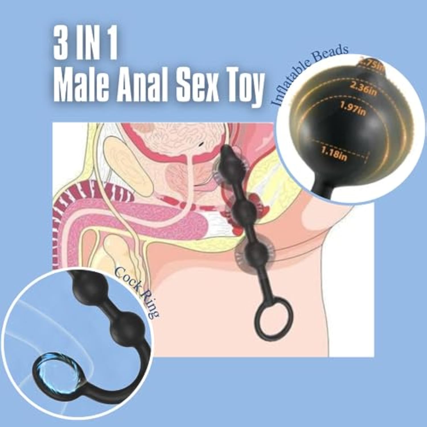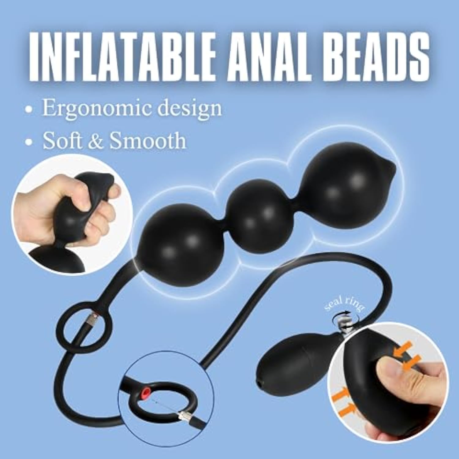 Inflatable Silicone Anal Beads Air Pump Detachable Adjustable Size Adult Sex Toy