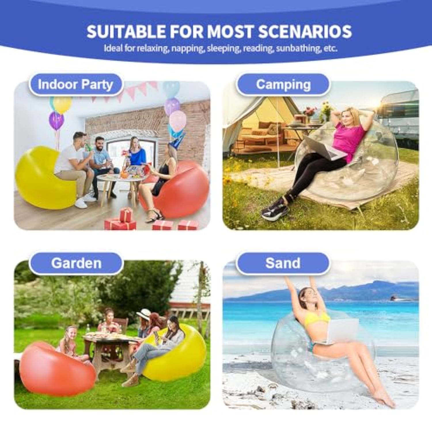 Versatile Comfort: Enjoy The Flexibility Of This Inflatable Transparent Sofa Chair, Suitable For Camping Trips, Movie Nights, Parties, Kids' Rooms, Game Rooms, And Living Rooms. Portable Relaxation: Easily Move This Lounge Couch Around To Create A Cozy Seating Area Wherever You Go, Whether It'S Indoors Or Outdoors. Space-Saving Solution: When Not In Use, Deflate This Bean Bag Chair For Convenient Storage, Perfect For Maximizing Space In Your Home. Durable And Stylish: Crafted For Durability And Style, This Inflatable Sofa Chair Adds A Modern Touch To Any Room While Providing Comfort And Support. Family-Friendly Design: Ideal For The Whole Family, This Chair Is Perfect For Relaxing, Watching Movies, Playing Games, Or Simply Lounging Together In Comfort.