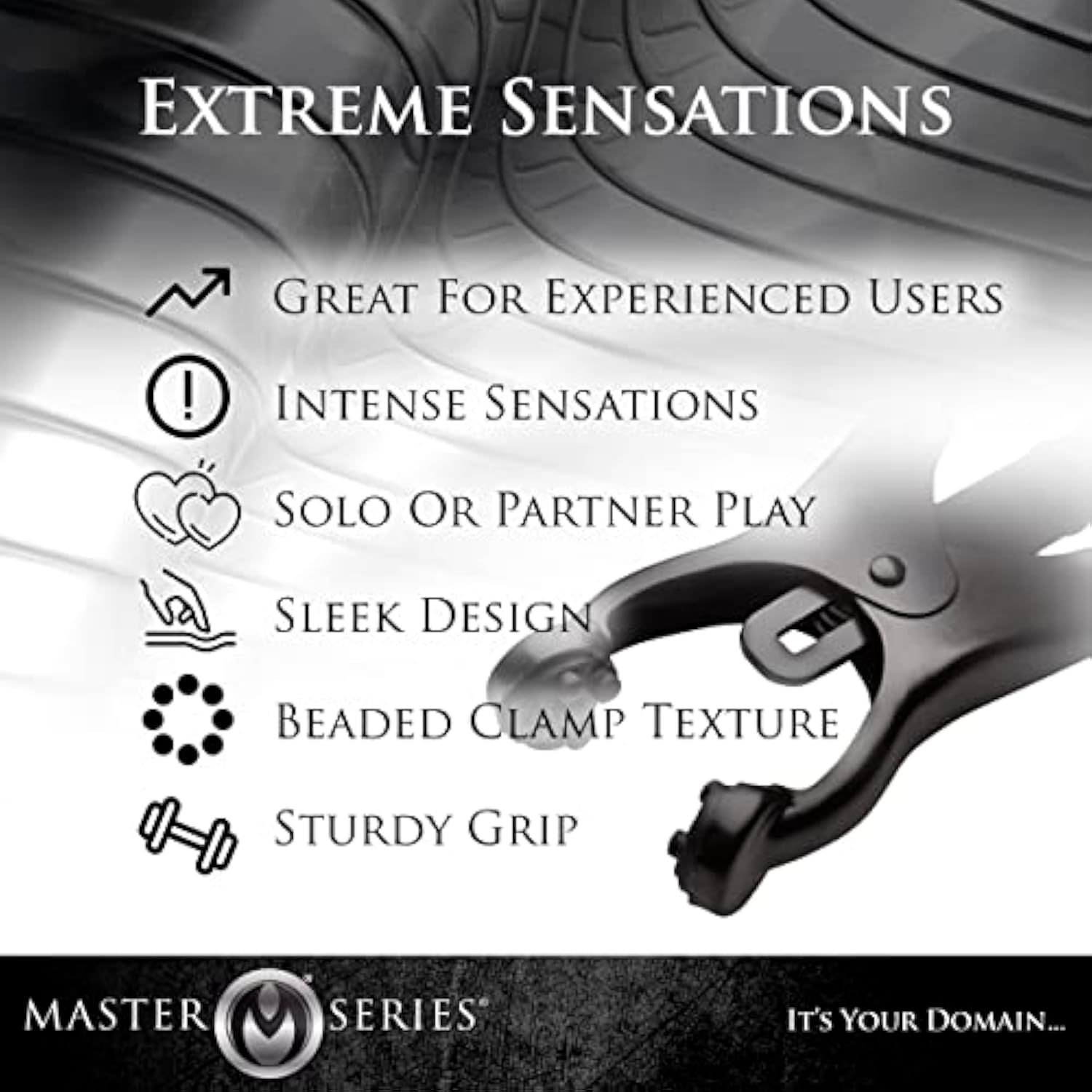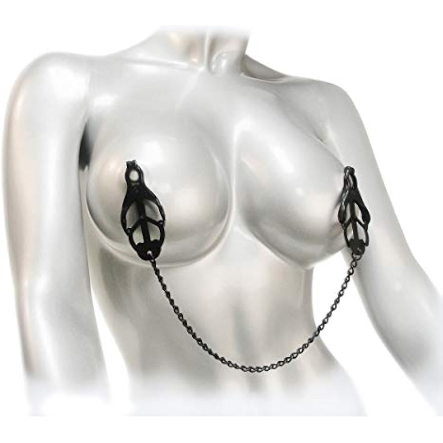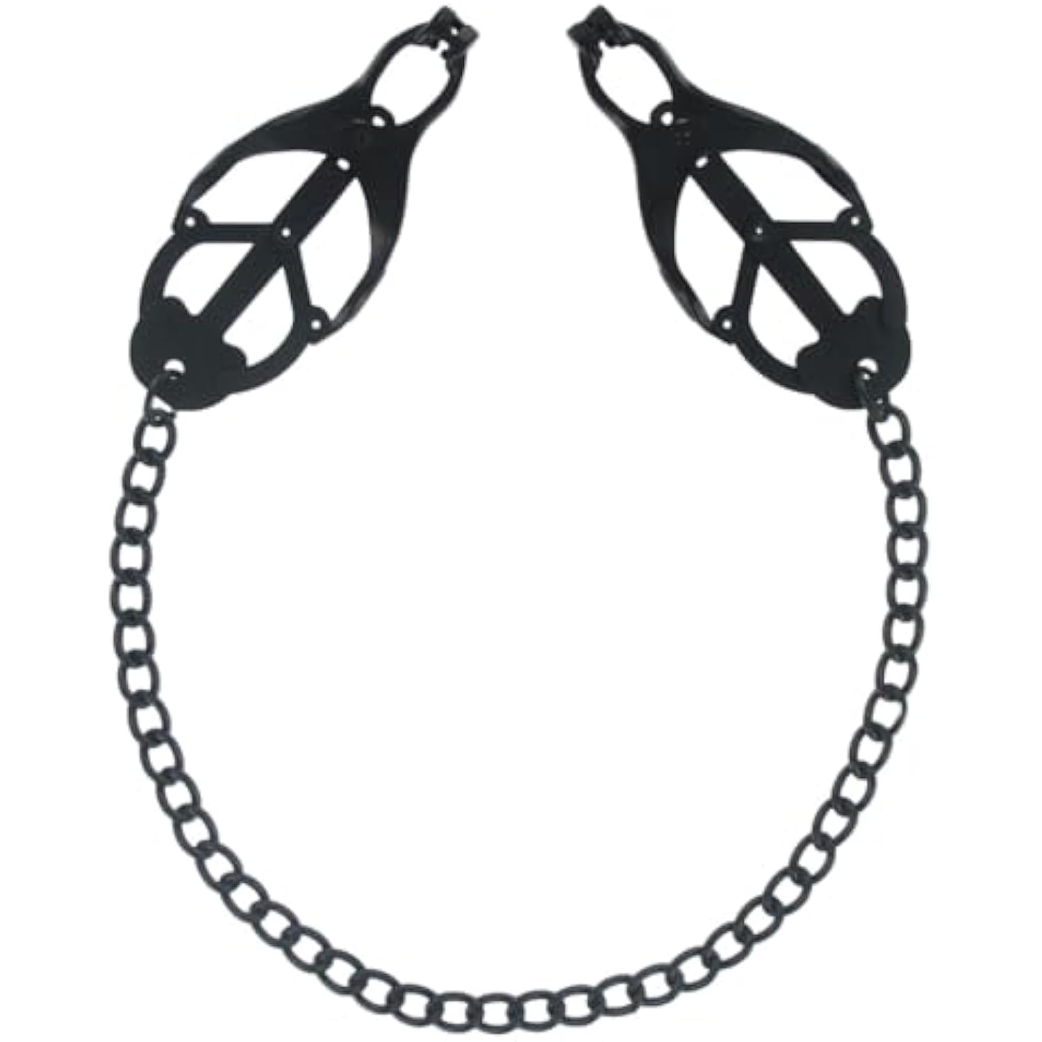 Japanese Clover Nipple Clamps With Chain - Adjustable Metal Clamp Set For Nipples, Textured Rubber Padded Tips - Clip On Design For Women Men Couples - Set Of 2, Black