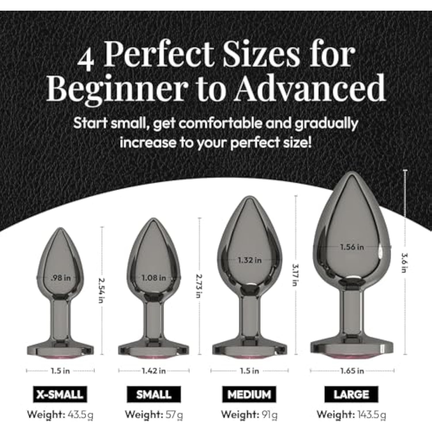 Jewel Butt Plug Beginner 4 Piece Set - Extra Small, Small, Medium, Large - Wide Base Prevents Slippage - Metal Anal Sex Adult Toy For Men & Women - Gunmetal Silver & Pink - Circle Shaped Charm