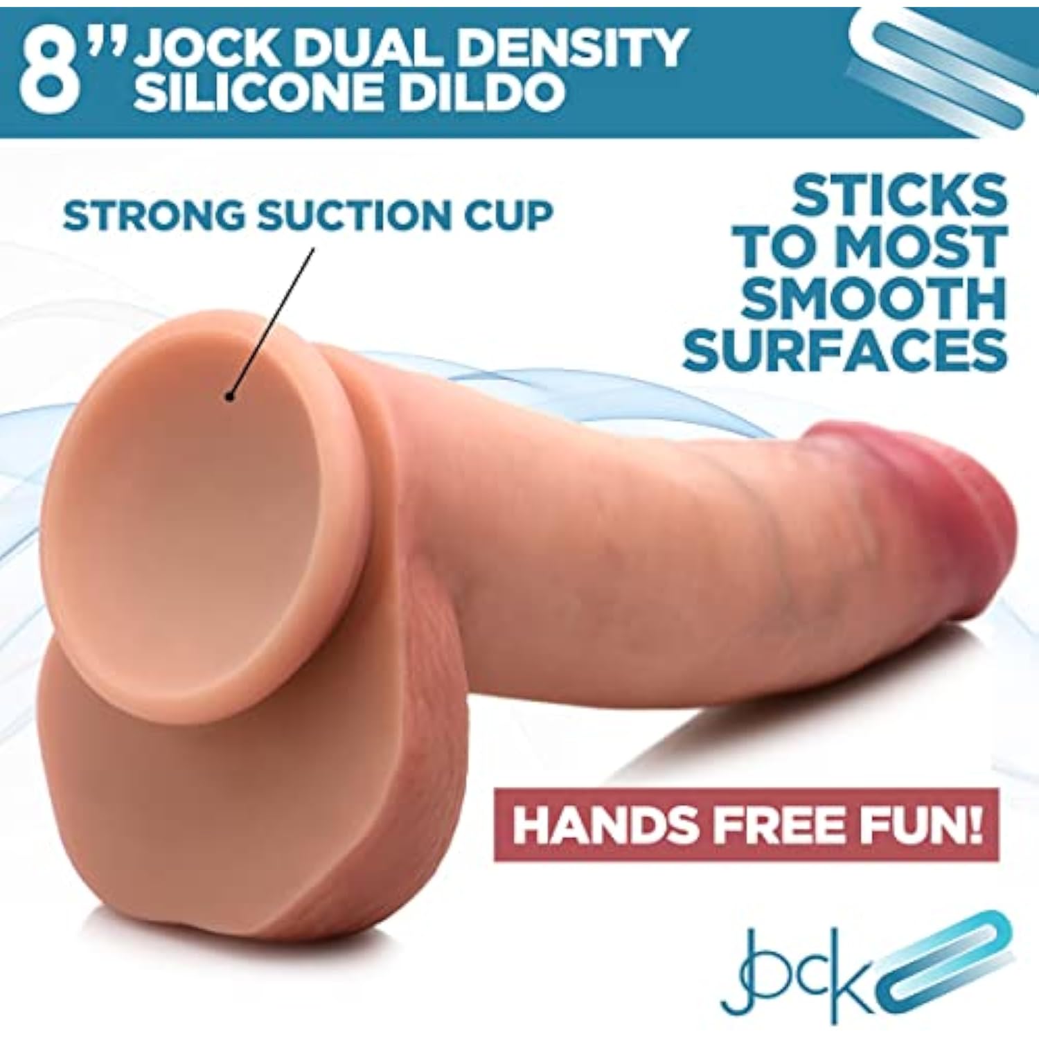 Jock 8" Dual Density Silicone Dildo W/Balls For Men, Women, & Couples. Body Safe Ultra Realistic Premium Silicone Dildo With Balls. 1 Realistic Dildo With Balls 8 Inches Light.