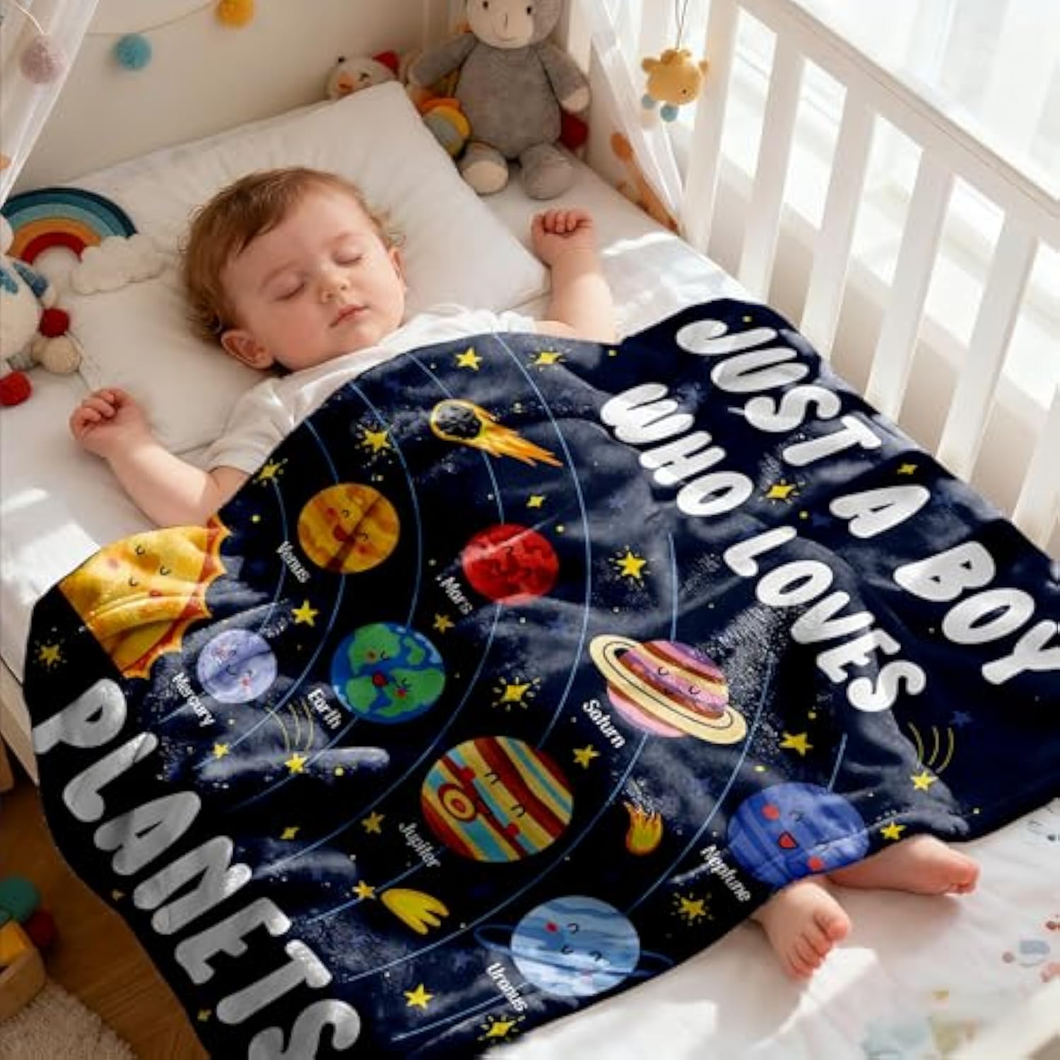 | ? Super Soft Cozy And Size:The Just A Boy Who Loves Planets Solar System Space Blankets Are Made Of Super Soft Flannel, Which Makes The Blanket Warm , Breathable, Soft To Touch, Easy To Care For, Silky And Light Weight. It'S Wrinkle And Fade Resistant, Doesn'T Shed, And Is Suitable For All Seasons And Everyday Use. | | Occasions: You Can Enjoy Blanket’S Warmth In The Lunch Break, Office Working, Living Room Entertainment, Study Reading, Travelling, Airplane,Compartment Warm, Tv Time, Air-Conditioner Room, Indoor Or Outdoor Also Easy To Carry. | | Soft Throw Blanket: This Blanket Will Exceed Your Expectation! The Blanket Is Available In A Variety Of Beautiful Patterns To Match Any Home Decorative. It’S The Perfect Addition To Living Room Space, Guest Rooms Bed, Bedrooms, Family Rooms, Vacation Homes, And More. Also Makes A Great Christmas New Year Gift Or Wedding Gift! | | Easy To Care: Anti-Fade, Anti-Pilling, No Shedding, Wrinkle-Free. Made With Shrink Resistant Fabric. Wash Separately In Cold Water; Tumble Dry Low. Avoid Direct Heat. No Bleach. This Flannel Blanket Holds Up Well In The Wash | | Good Gift: This Super Soft Blanket Can Bring Warmth. The Bed Blanket Gifts To Your Friends Or Familys.It Is Also The Preferred Choice For Various Holiday Gifts, Such As Easter,Halloween, Christmas, Thanksgiving, Father'S Day, Mother'S Day, Valentine’S Day, Teacher'S Day, Birthday,Wedding Anniversary And More. | |